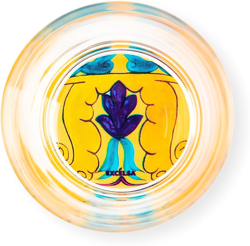- Unser klares, modernes Design verfügt über ein farbenfrohes und lebendiges Dekor auf der Unterseite, das jedem Glas einen Hauch von Lebendigkeit und Stil verleiht.