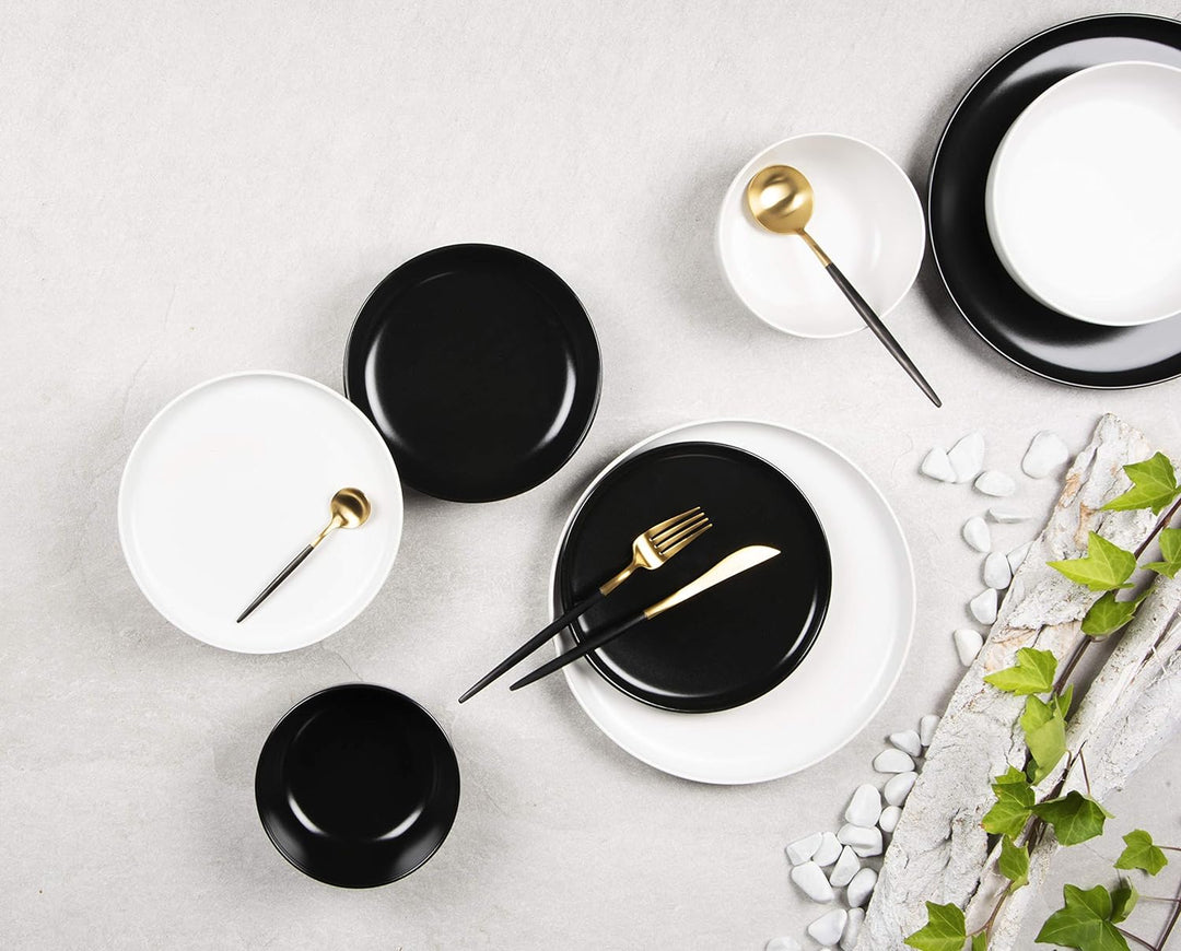 - DESIGN: Das Service zeichnet sich durch ein mattes Finish und einen modernen, geraden Stil aus, der ihm ein raffiniertes und zeitloses Design verleiht, das die Eleganz Ihres Tisches hervorhebt. Sie können diese Gerichte verwenden, um eine komplette