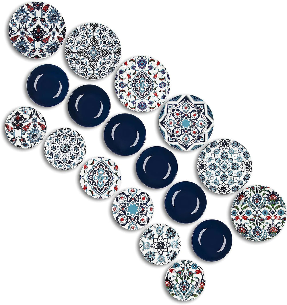Variante: Set 18 Pezzi Topkapi-dekoration: Flache Teller und Obst. Suppenteller, Blau.