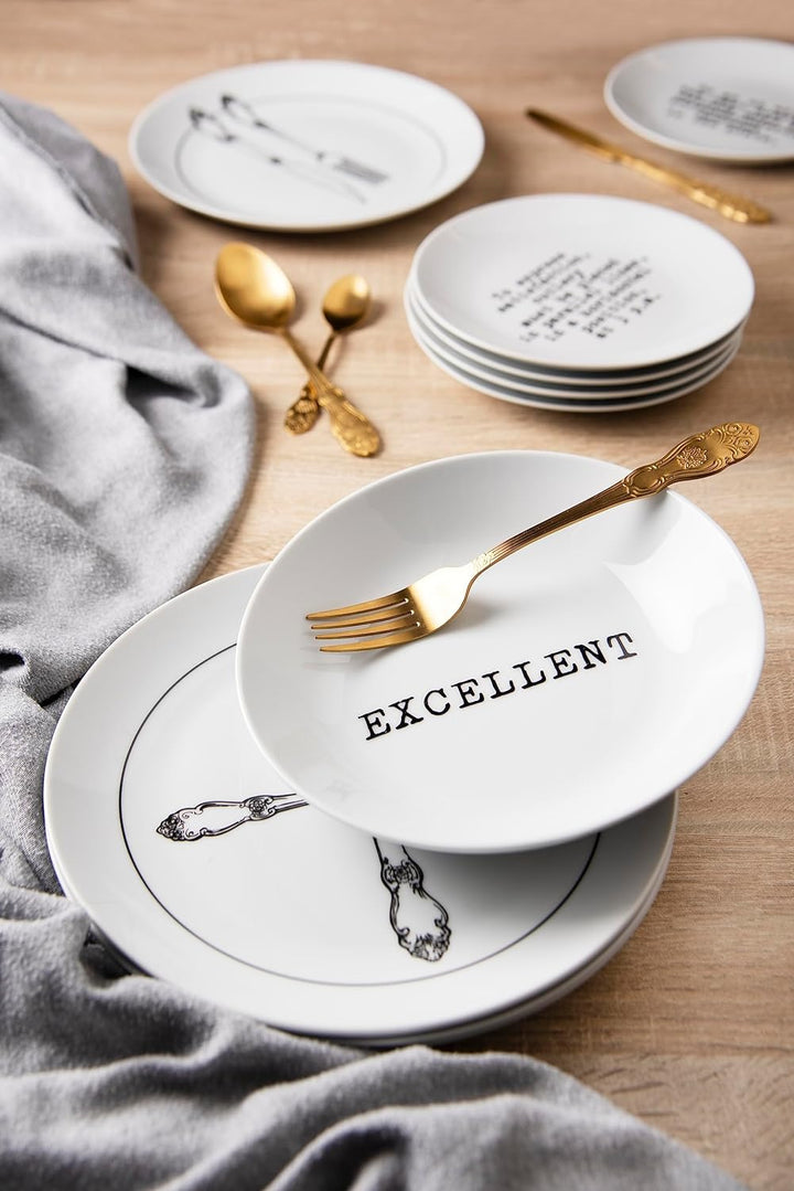 - 18-teiliges Tellerservice, zum Servieren von bis zu 6 Personen: Das Excelsa Galateo Tellerservice besteht aus 18 Teilen und ist für jeden Anlass geeignet. Die Dekorationen im alten Stil sorgen dafür, dass die Etikette keine Geheimnisse mehr hat, so