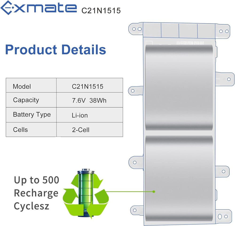 - 【Batteriespezifikation】100% brandneue c21n1515 akku;Spannung:7.6V;Kapazität:5000mAh 38Wh;Batterietyp:Li-ion.