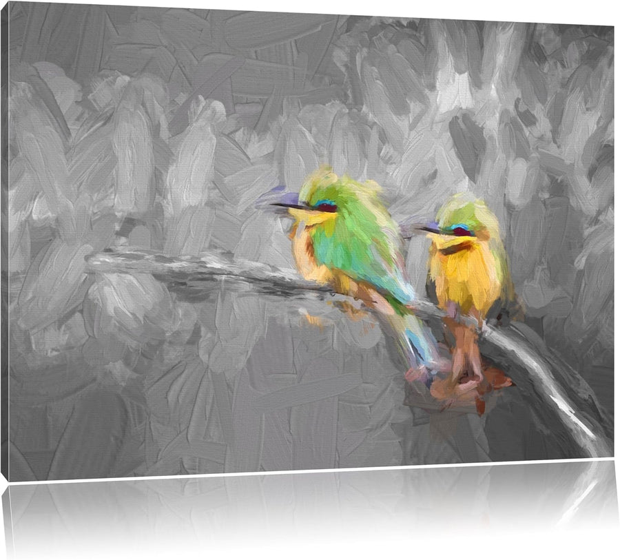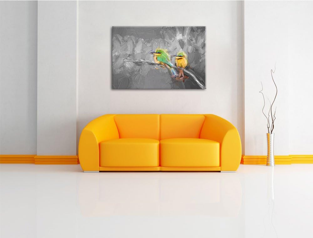 exotische Vögel auf Ast schwarz/weiss Deluxe Format: 100x70 cm auf Leinwand, XXL riesige Bilder fert