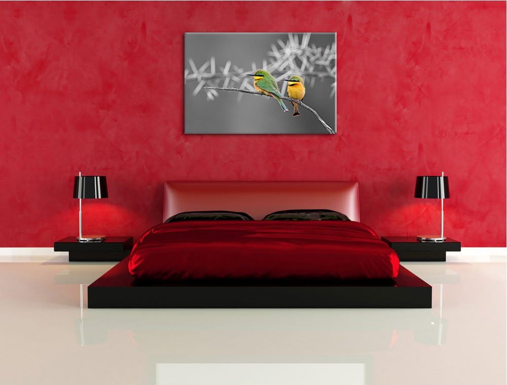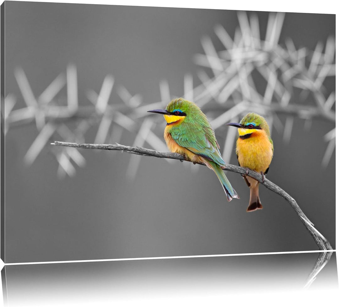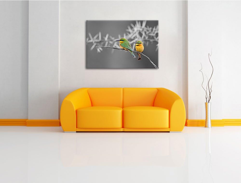 exotische Vögel auf Ast schwarz/weiss Format: 100x70auf Leinwand, XXL riesige Bilder fertig gerahmt