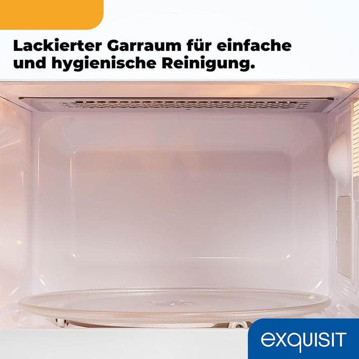 - Eigenschaften, die begeistern: Der lackierte Garraum verspricht eine einfache und hygienische Reinigung. Für eine gleichmässige Erwärmung Ihrer Speisen sorgt der integrierte Drehteller mit einem Durchmesser von 25,5 cm.