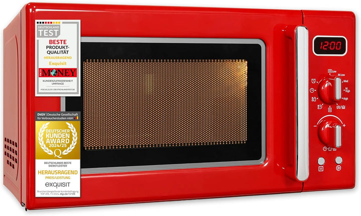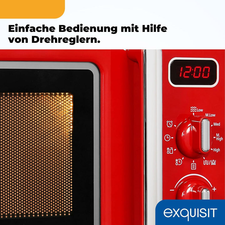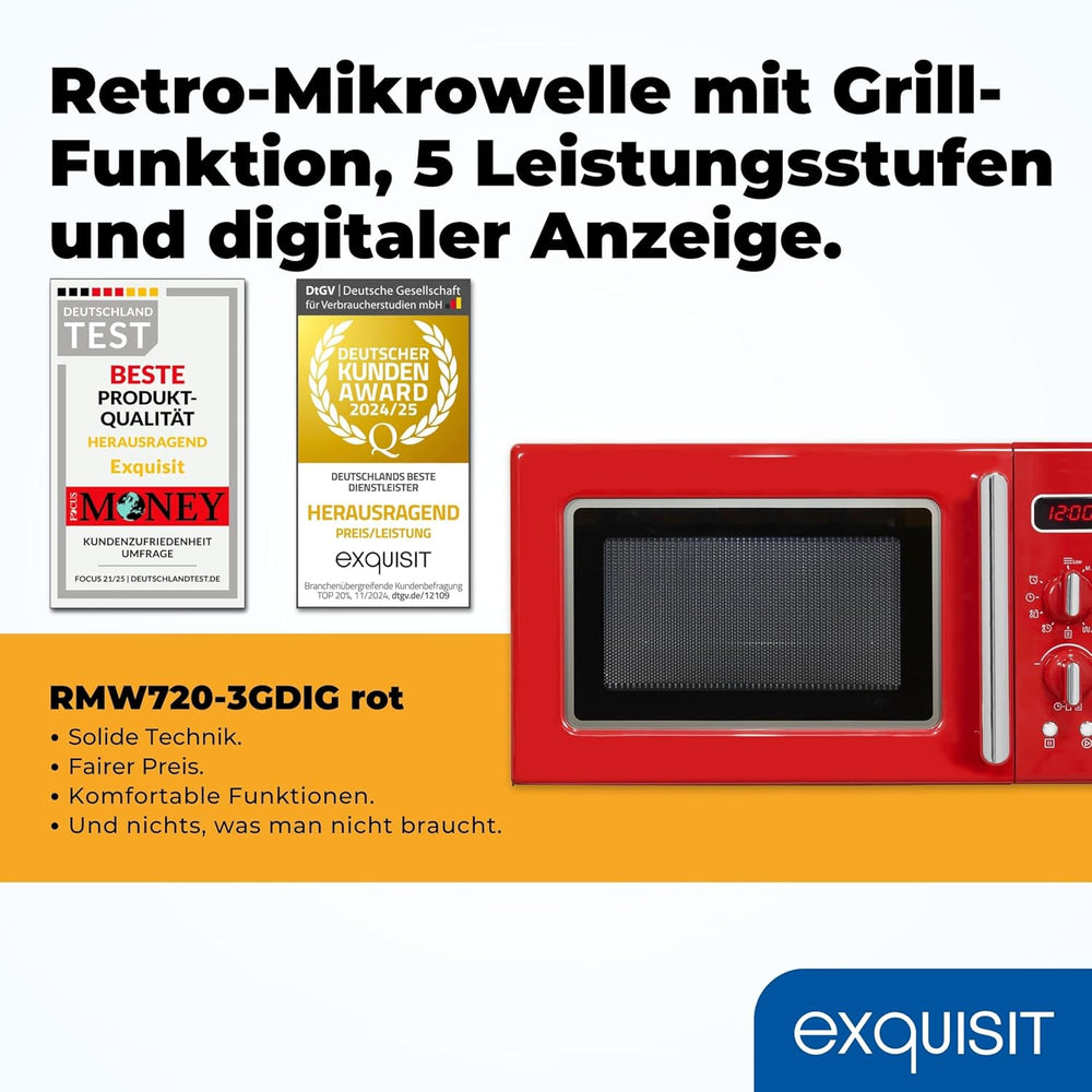 Exquisit Retro Mikrowelle RMW720-3GDIG rot | 20 Liter | 1000 Watt Grill | Digitale Anzeige | Rot | D