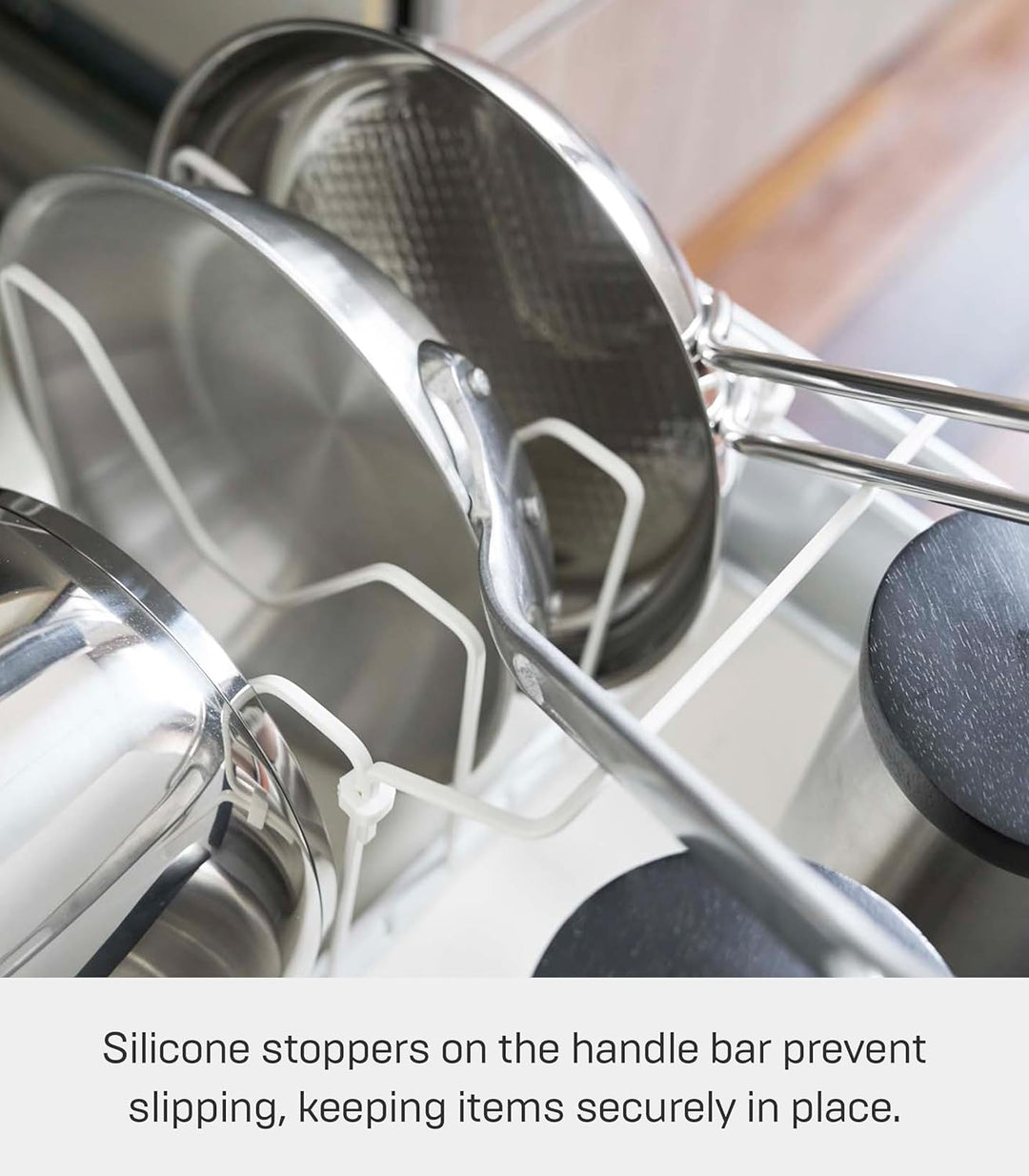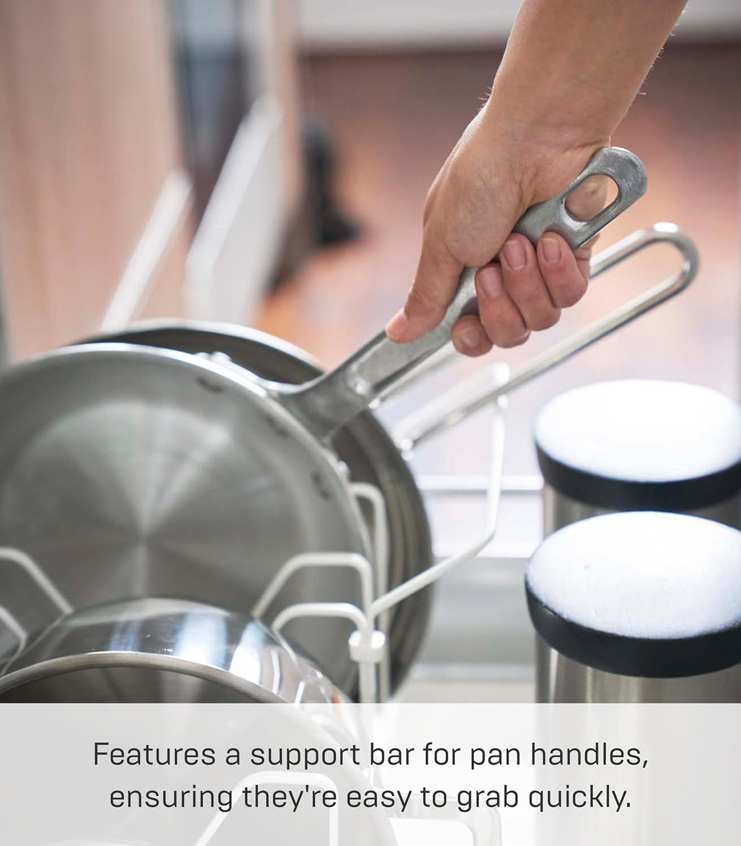 - Platzsparende Aufbewahrung von Töpfen und Pfannen