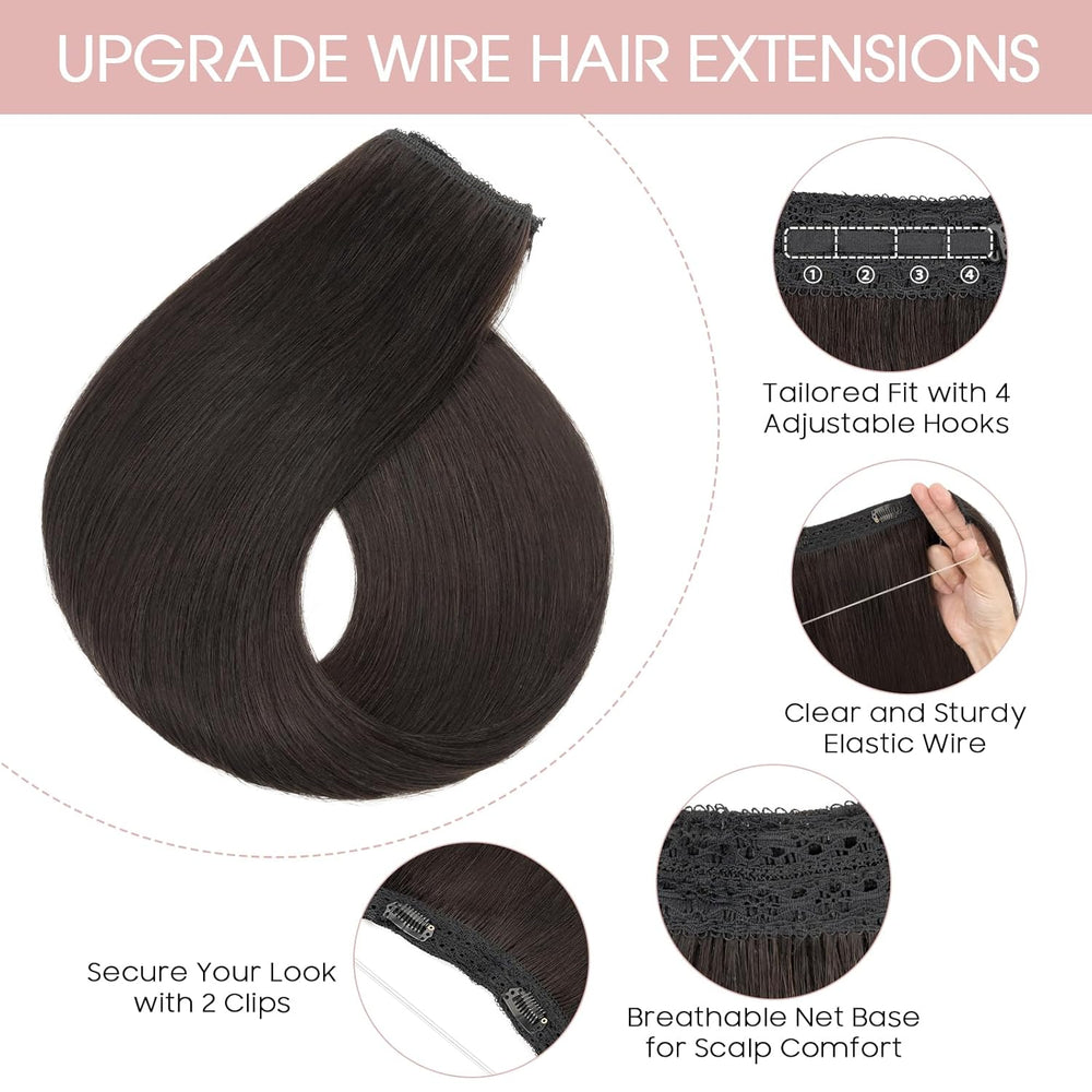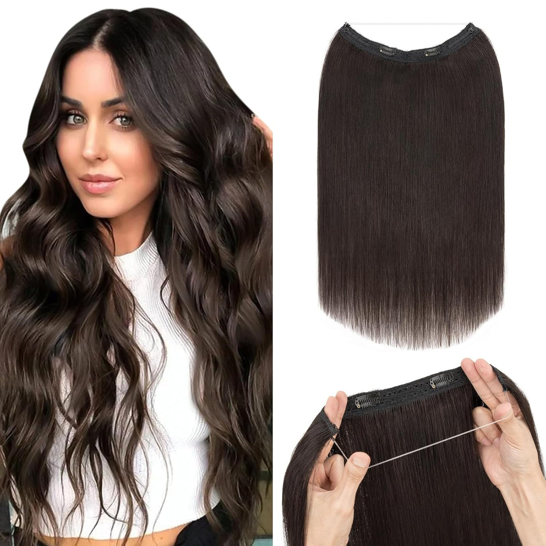 Extensions Echthaar mit transparenter Schnur, Silk-co Wire in Extensions Naturschwarz 55g, Secrets H