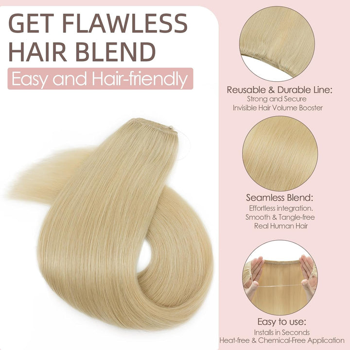 - Es gibt keinen Leim, keine Clips und kein Klebeband, nur eine unsichtbare Draht, so ist die Haarverlängerung schadensfrei und hübsch.