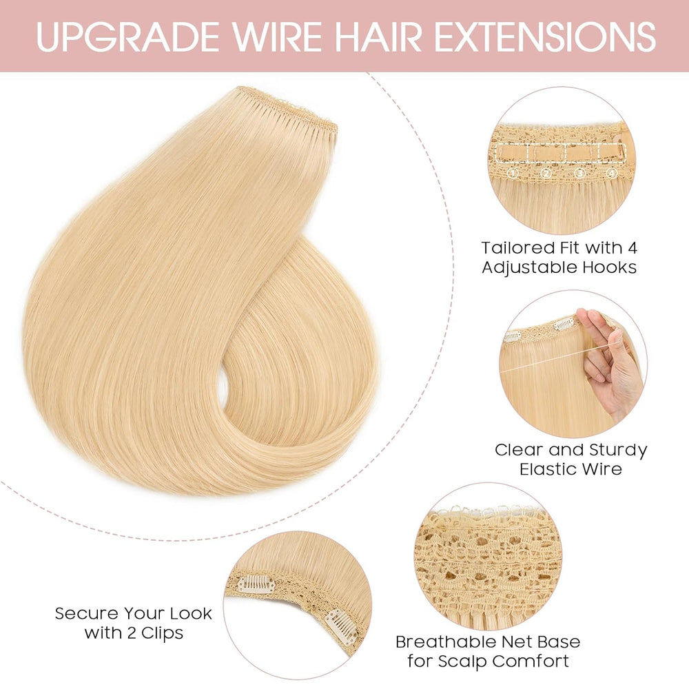 Extensions Echthaar mit transparenter Schnur, Silk-co Wire in ExtensionsPlatinblond 75g, Secrets Hai