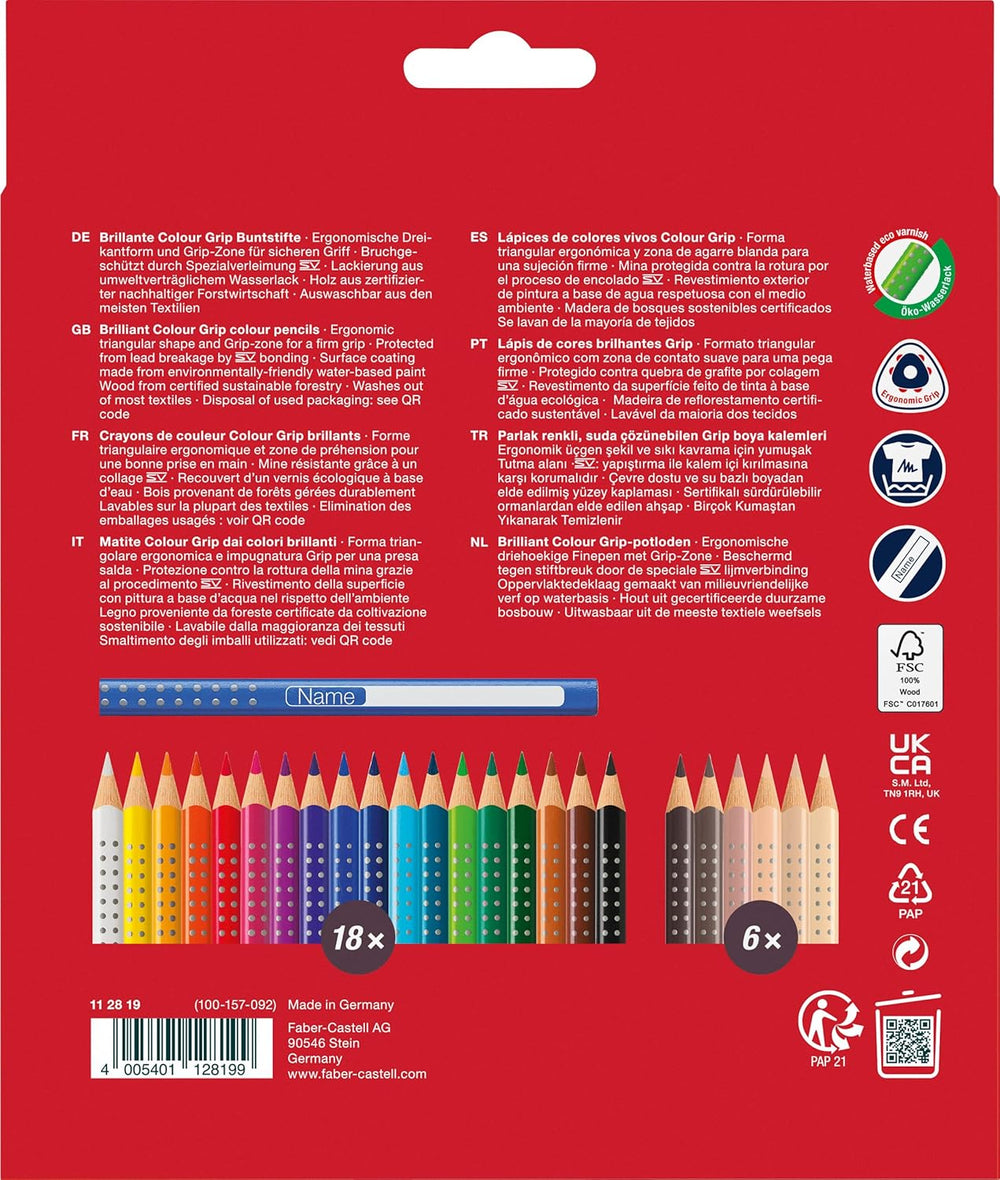 - Das Stifte Set beinhaltet 18 Colour Grip Buntstifte in Standard Farben und 6 Colour Grip Buntstifte in verschiedenen Hautfarben