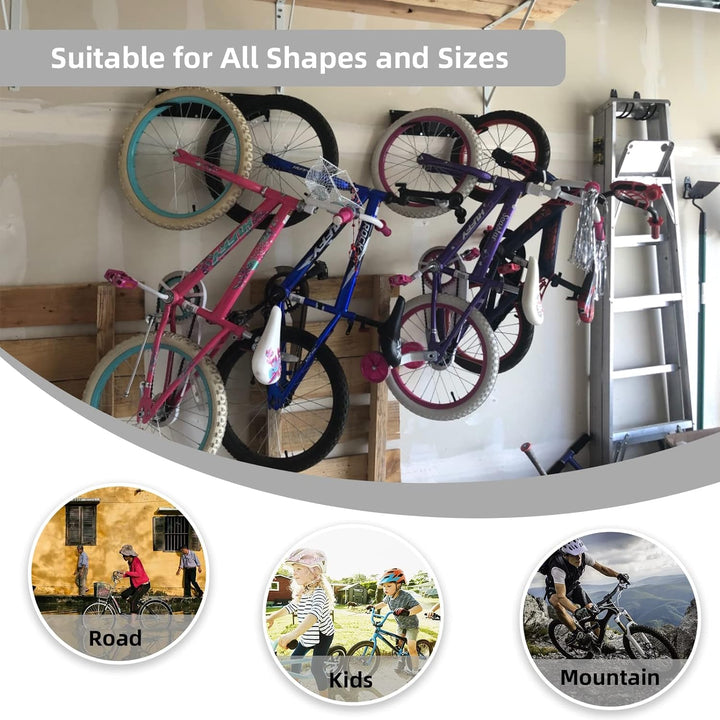 - 【Platzsparen】 Vertikaler Fahrradbügel nimmt das Fahrrad vom Boden und schafft so wertvollen Platz in Ihrer Garage oder Ihrem Haus. Fahrradhaken sind geeignet für Mountainbikes, Rennräder, Kinderfahrräder usw. Sie sind nicht geeignet für