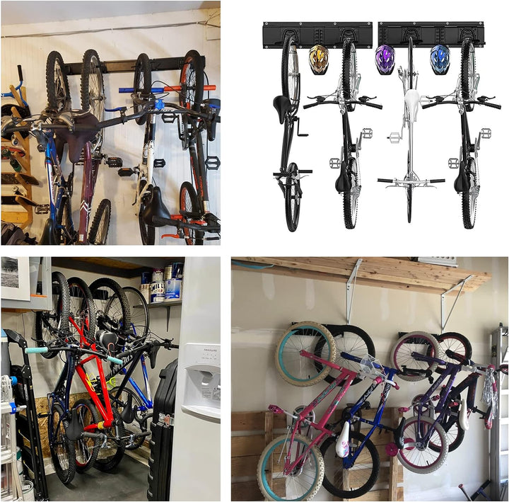 - 【Einfach zu installieren】 Der Fahrradhalter enthält 2 * Stahlschienen, 4 * Fahrradhaken, 3 * Helmhaken, Schrauben, Dehnungsrohre, Sie benötigen nur eine elektrische Bohrmaschine, vielleicht eine Wasserwaage, bohren Löcher in die Wand und