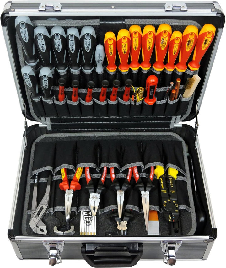 - Werkzeugkoffer in verstärkter Ausführung: verstärkte Deckel sowie Boden- und Seitenflächen