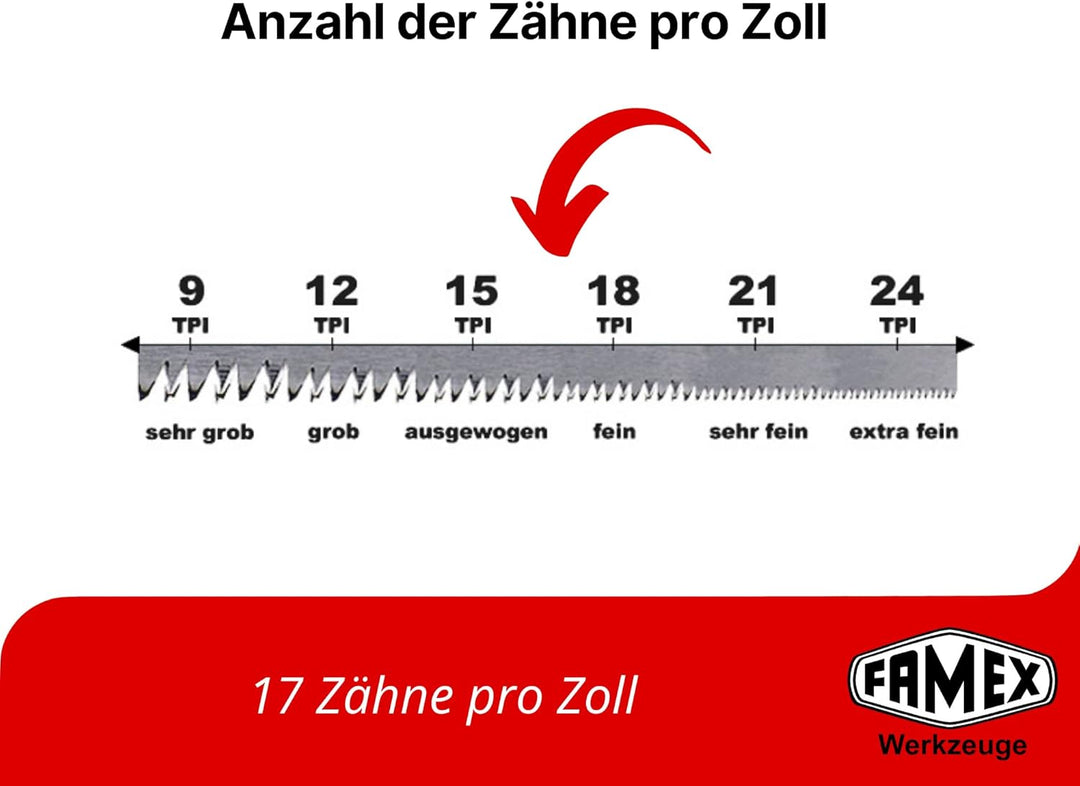 - 🔎 TECHNISCHE DATEN: Länge Sägeblatt: 27cm – Sägeblattdicke: nur 0,3(!)mm – Schnittbreite: nur 0,4(!) – Zähne pro Zoll 17