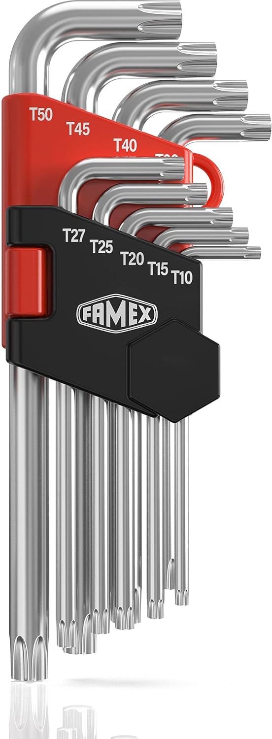 - โ ๐๐๐ ๐๐๐๐ ๐๐๐๐๐ ๐๐๐: Winkelschraubendreher Spar-Set fรผr Innensechskant- und fรผr Torx-Schrauben in TOP-Qualitรคt. Die 18 Winkelschraubendreher befindet sich in einem hochwertigen Kunststoffhalter.