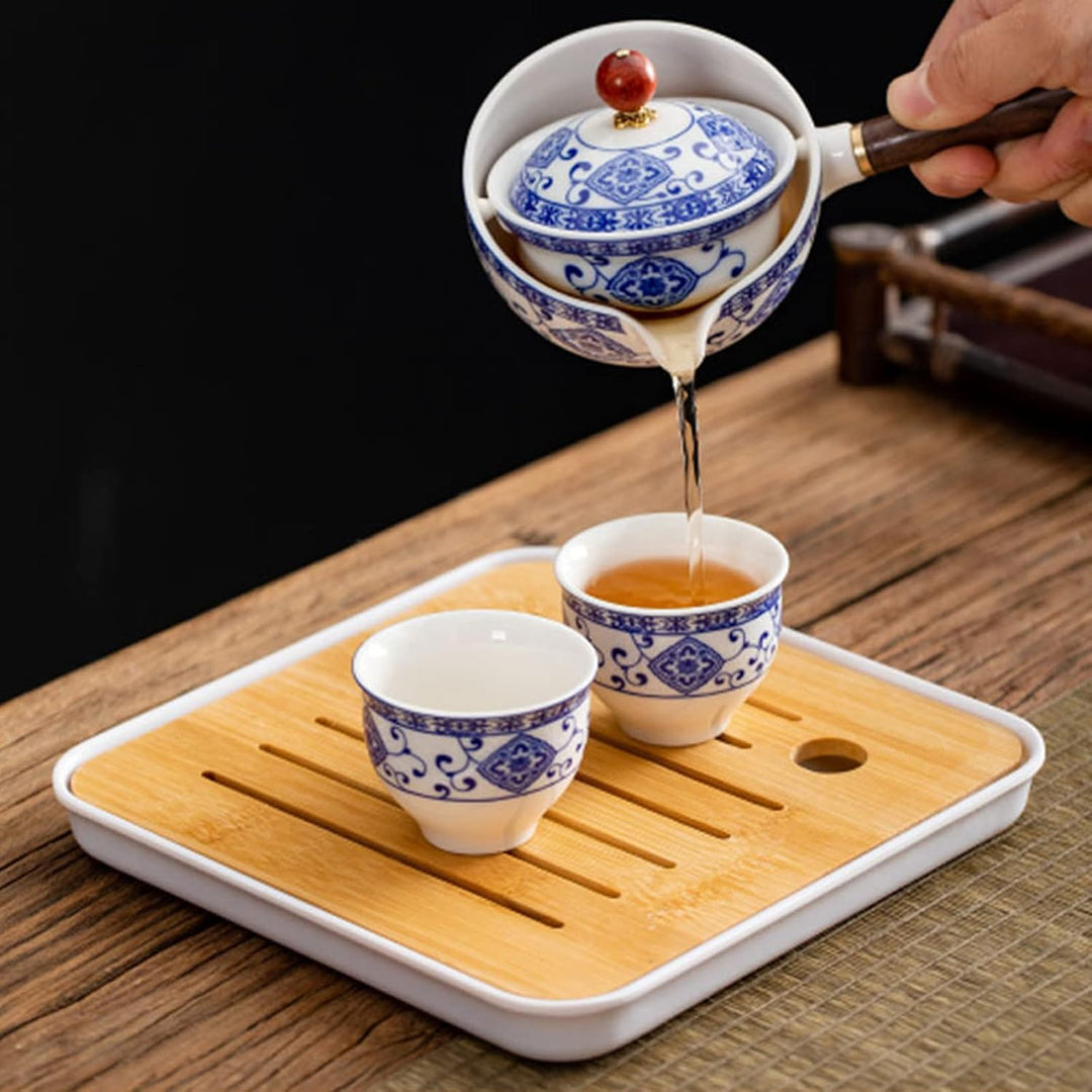 - VERPACKUNG: Kommt mit Kartonpaket, einschliesslich 1 x Teekanne, 4 x Teetassen, 1 x Teetablett, 1 x Reisetasche. Das Keramik-Tee-Set ist mit Schaumstoff und stossfesten Box verpackt, um zu verhindern, gebrochen in Versand.