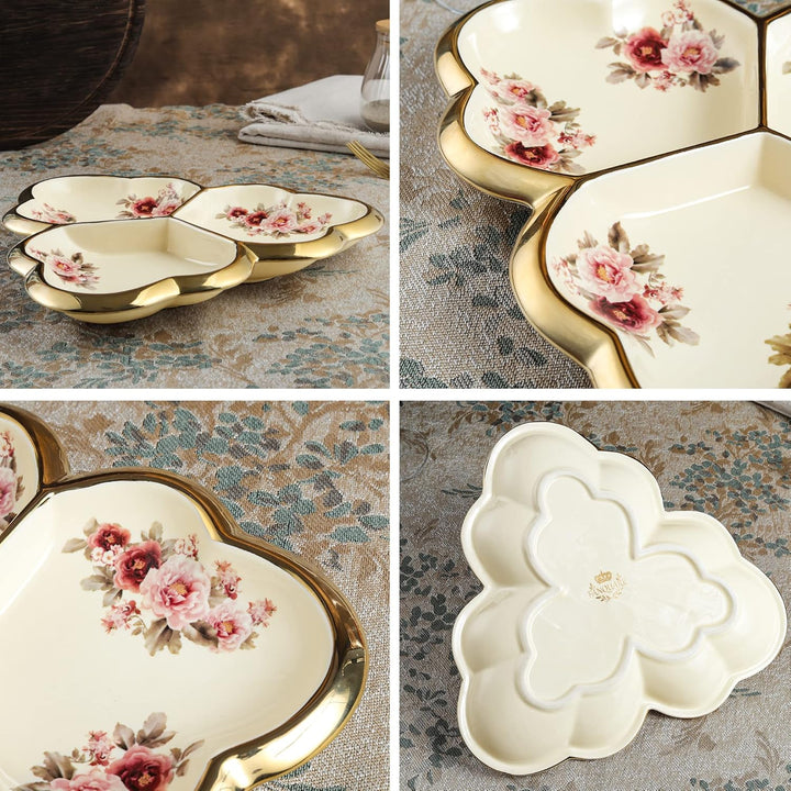 - GRÖSSE: 26.3 x 26.3cm. Einzigartiger Teller mit 3 Fächern zum Servieren von Chips und Dips, Süssigkeiten, Gemüse und zum Vermeiden von Geschmacksvermischungen. Perfekt für Partys, Buffets, Hausversammlungen, Restaurants