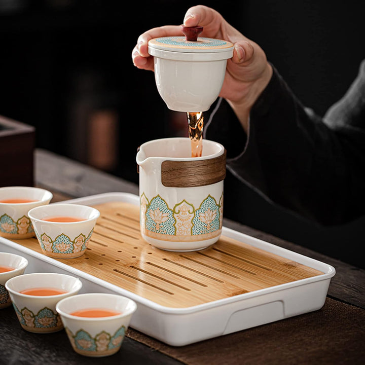 fanquare Chinesisches Porzellan Teekanne mit Sieb, Kungfu Keramik Teeservice mit Reisetasche,Teedose