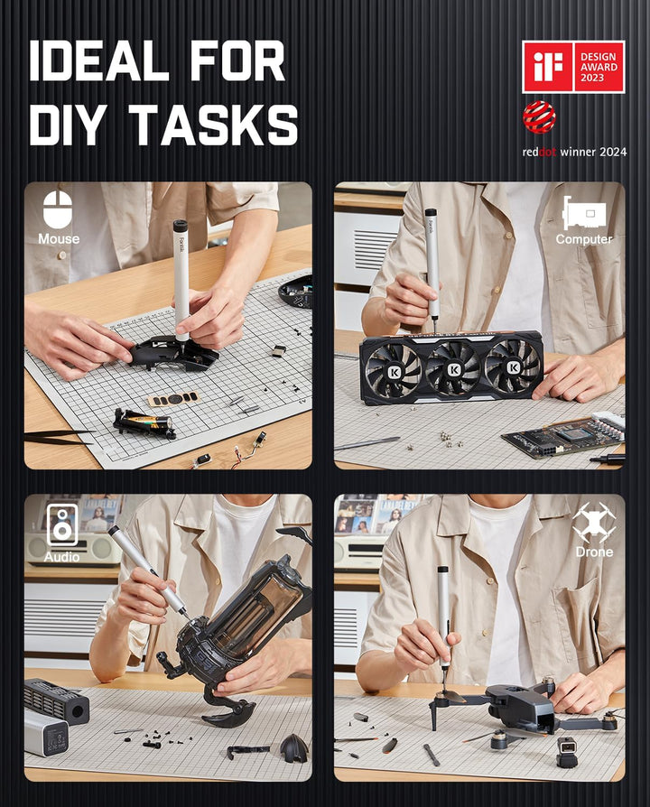- Präzises Drehmoment: Ausgestattet mit einem hohen Drehmoment von 0,2 Nm und einem niedrigen Drehmoment von 0,05 Nm sowie einem manuellen Drehmoment von 3 Nm bietet dieser empfindliche Elektroschrauber genaue Drehmomentkräfte für Ihre praktischen