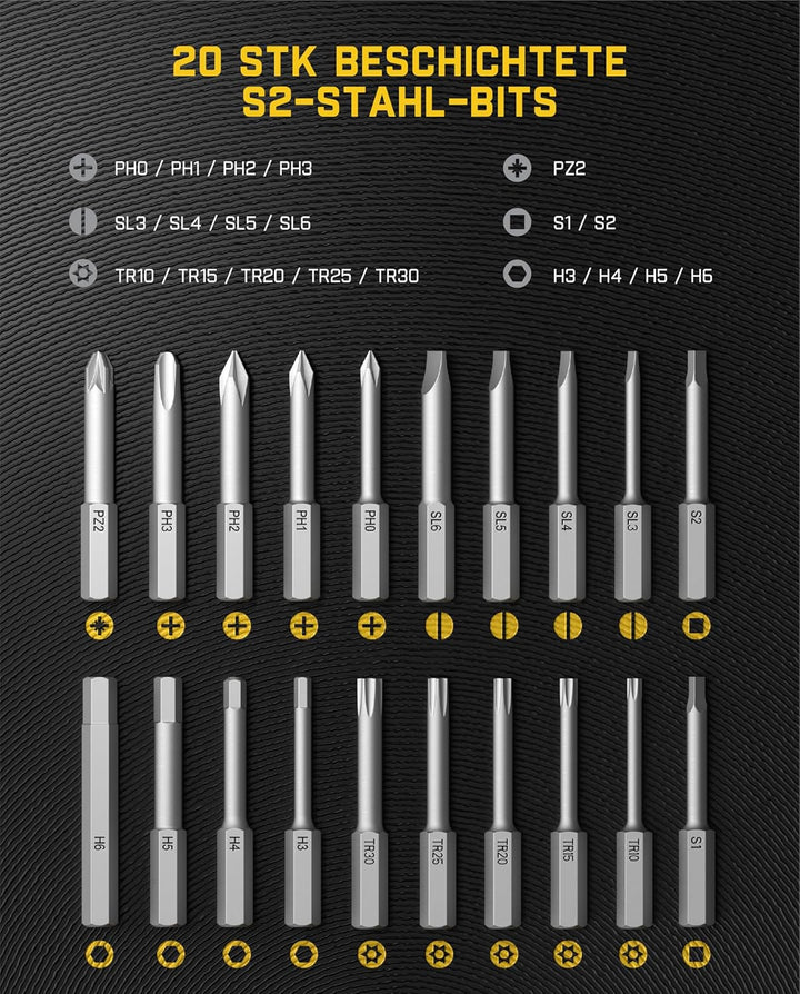 - Präzisions-Einstelldrehmoment und LED-Anzeige: Sie können das Drehmoment durch den Drehmomentring mit 8 Einstellungen einstellen, um Präzision zu gewährleisten, und die Echtzeit-Drehmomentstufen auf dem Bildschirm visuell überwachen. Dies bietet