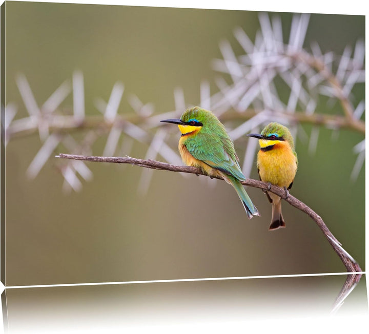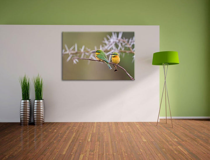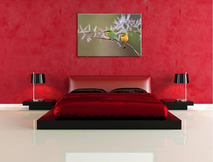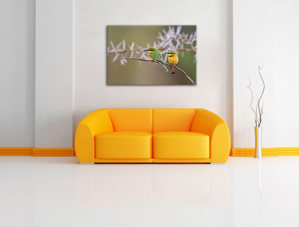 farbenfrohe exotische Vögel auf Ast Leinwand, XXL riesige Bilder fertig gerahmt mit Keilrahmen, Kuns