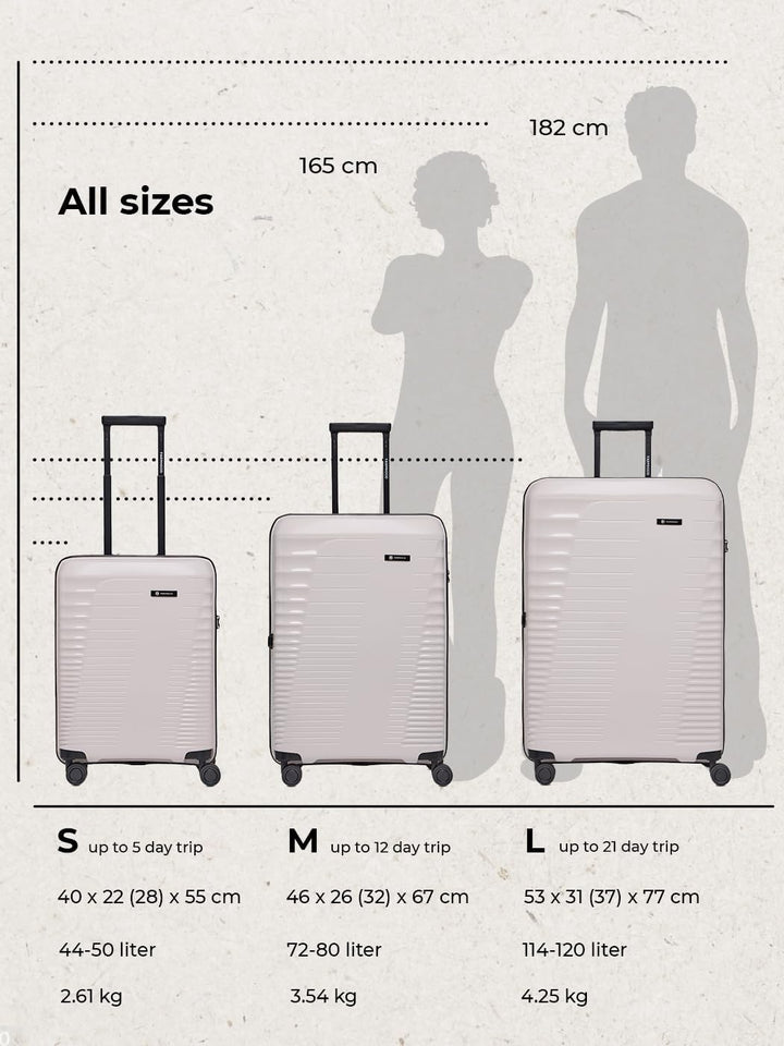 • VIEL PLATZ: Der grosse Koffer bietet mit seinen 53 x 31 x 77 cm (LxBxH), einem Gewicht von 4,25 kg und einem Volumen von ca. 114 Liter viel Stauraum für ausgiebige Reisen. Der mittelgrosse Koffer misst 46 x 26 x 67 cm, ein Gewicht von 3,54 kg und ein