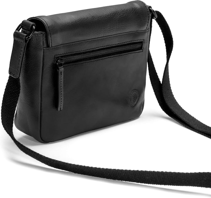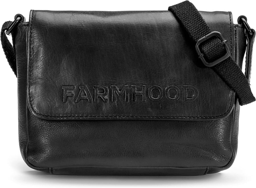 FARMHOOD Memphis Damen Umhängetasche aus Leder 22 cm - mittelgrosse Handtasche mit Reisserverschluss