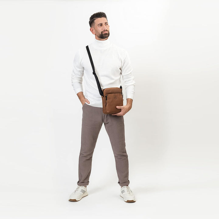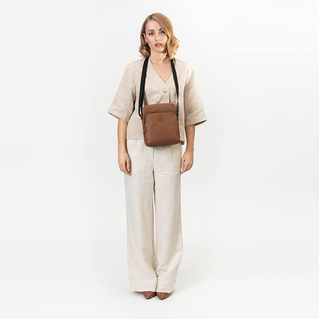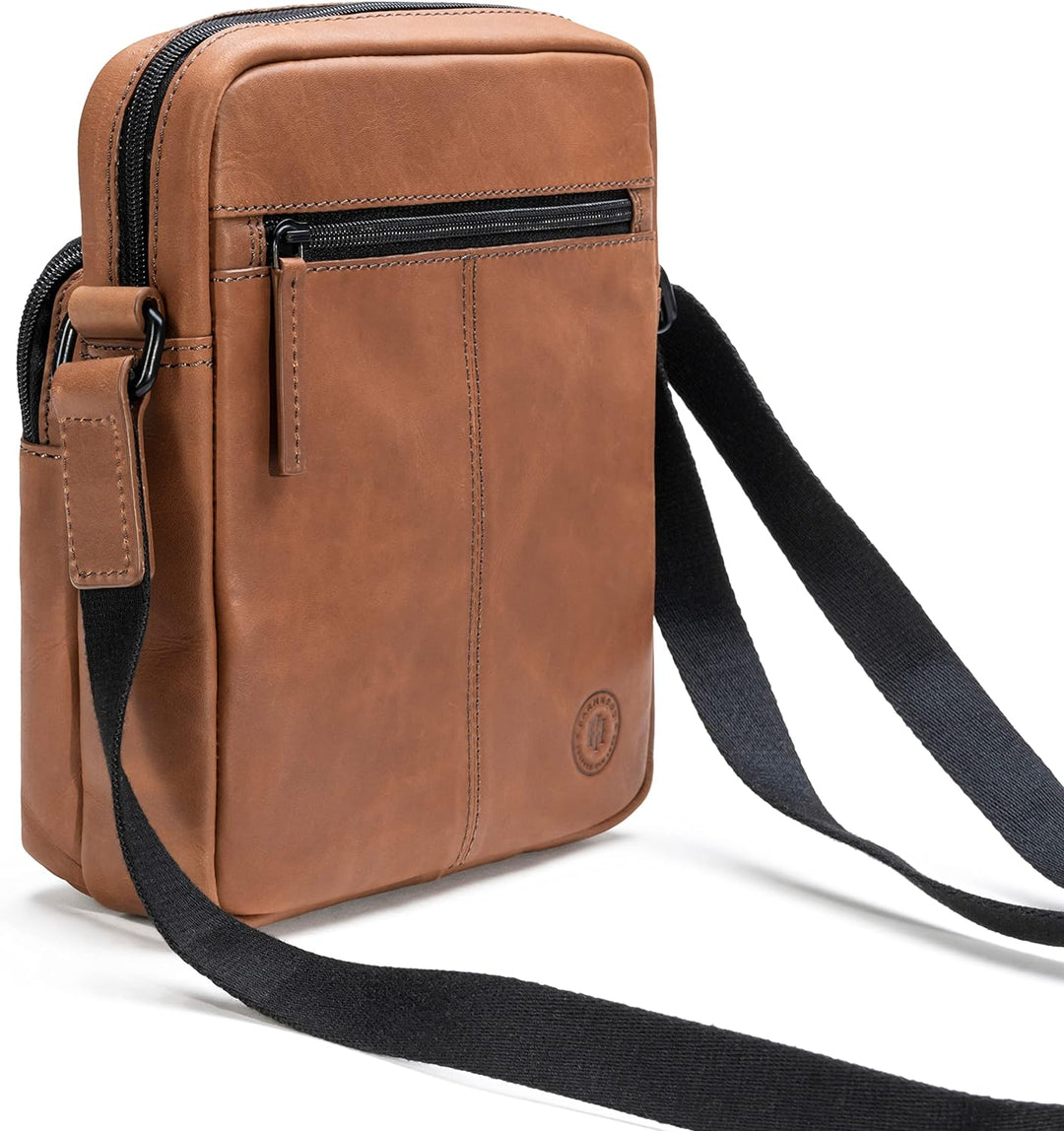 FARMHOOD Nashville Damen/Herren grosse Leder Umhängetasche mit vielen Fächern | breiter, längenverst