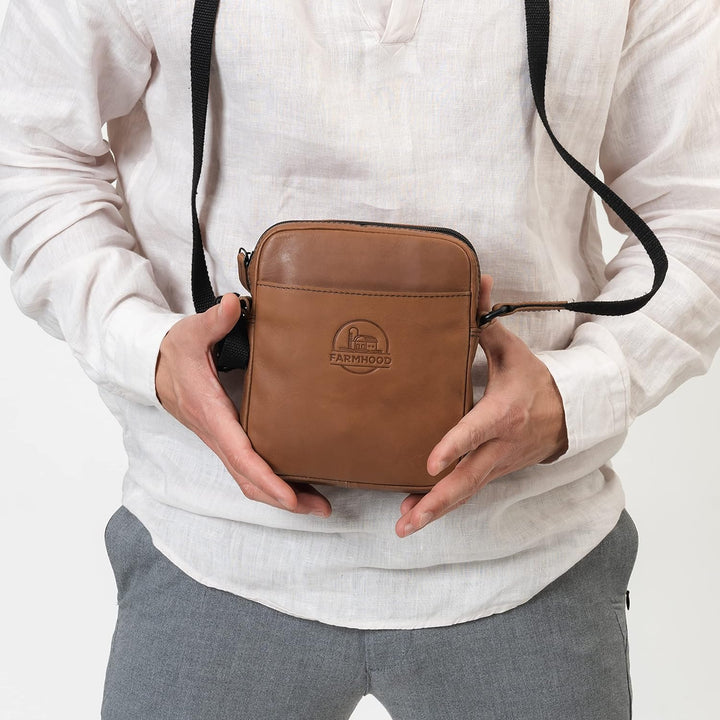 FARMHOOD Nashville Damen/Herren Leder Umhängetasche | längenverstellbarer Schulterriemen & Reissvers