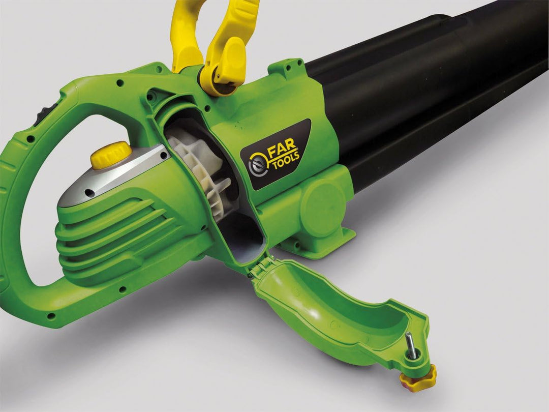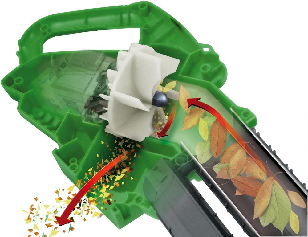 - 2 Funktionen: Laubbläser (150–270 km/h) oder Laubsauger. Häcksler für geringeres Volumen der aufgesaugten Blätter