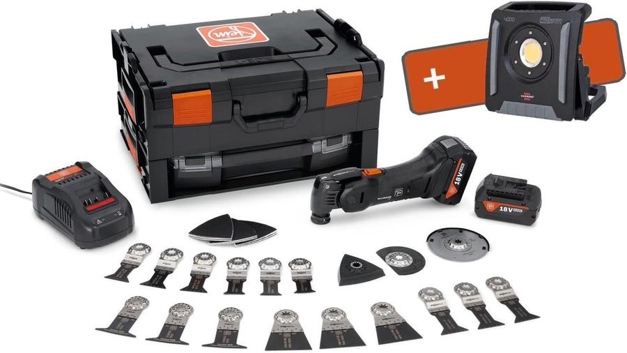 - Zusätzlich erhalten Sie einen hochwertigen LED Akku Arbeitsstrahler von Brennenstuhl MULTI BATTERY 18V, der mit unserem MultiTool kompatibel ist, um Ihnen auch bei schlechten Lichtverhältnissen beste Sicht zu gewährleisten.
