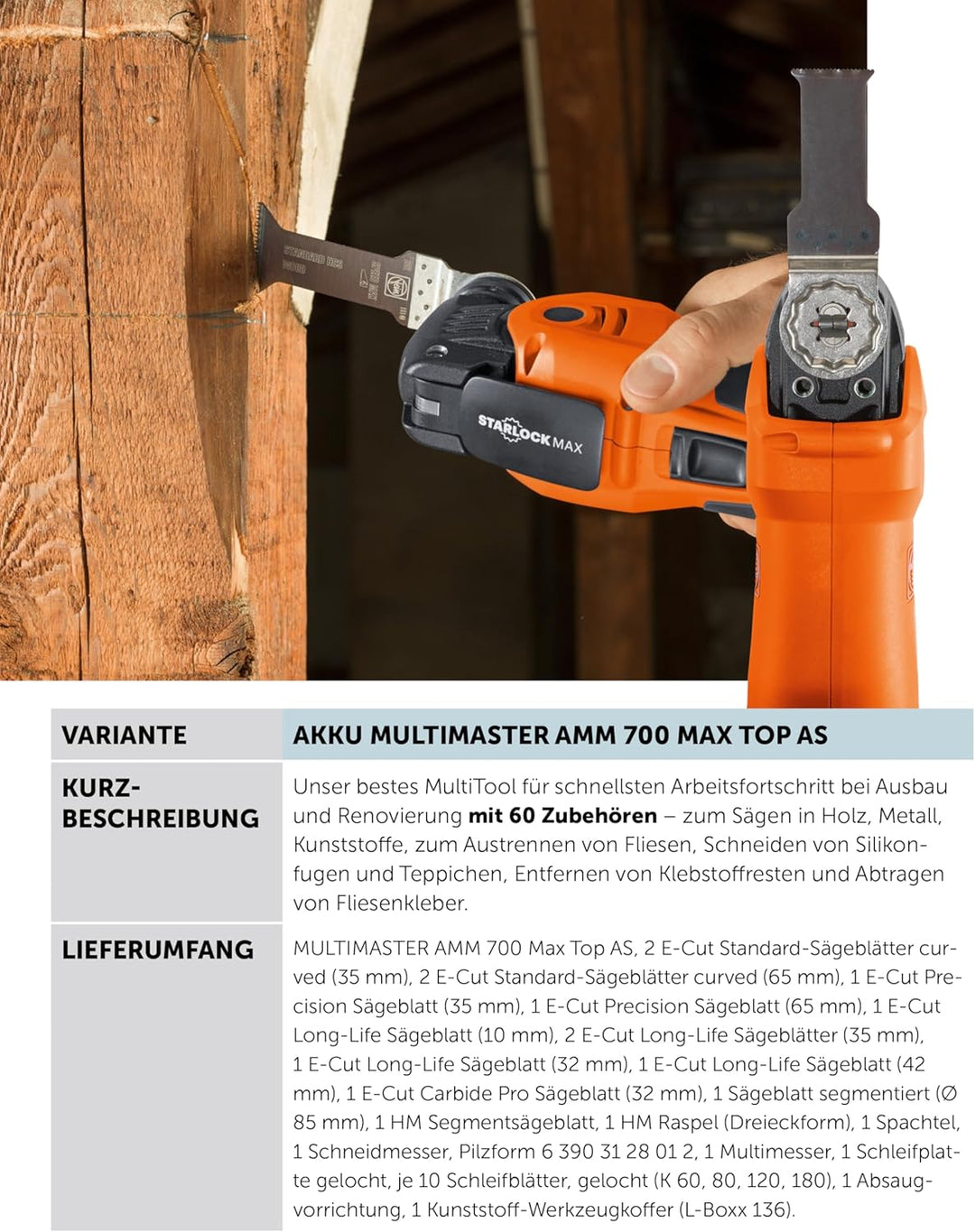 - Dank StarlockMax Werkzeugaufnahme haben Sie Zugriff auf rund 180 FEIN Zubehöre der Leistungsklassen Starlock, StarlockPlus und StarlockMax