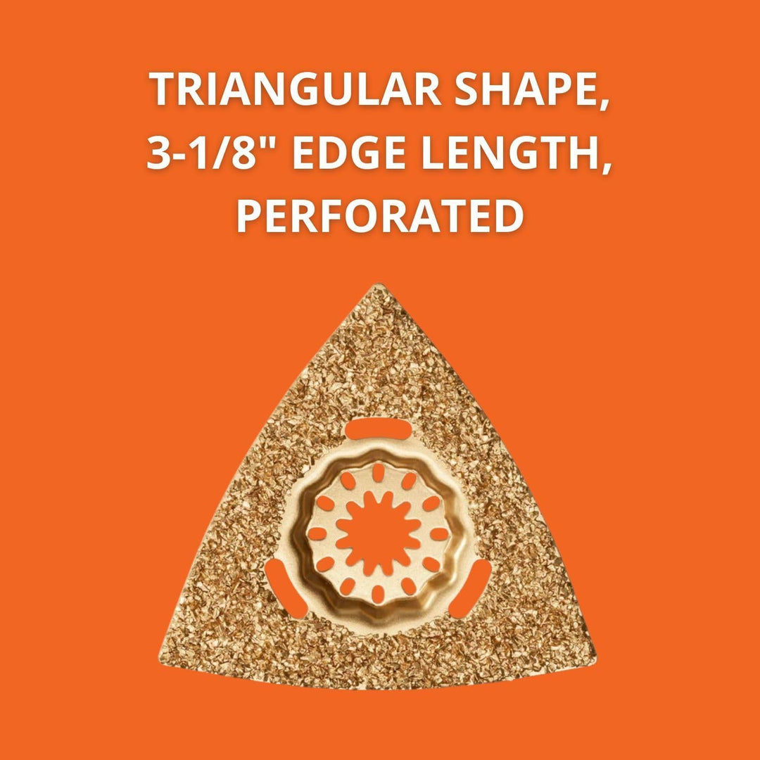 - Dreiecksform, Kantenlänge 80 mm, gelocht, auch mit Staubabsaugung einsetzbar.