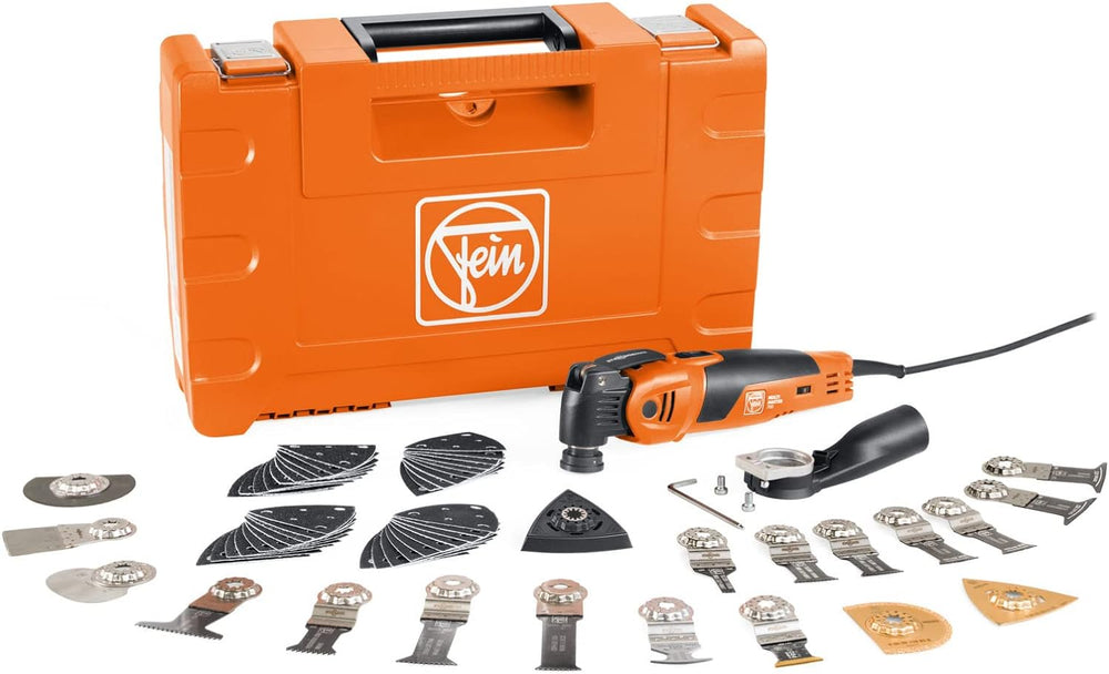 - Oszillierer - 450 W FEIN Motor. Überlastsicherer, Hochleistungsmotor Metall-Getriebe: Hohe Belastungsfähigkeit und maximale Lebensdauer, da alle Getriebeteile aus Metall gefertigt sind. mit 60 Zubehören – zum Sägen in Holz, Metall, Kunststoffe, zum