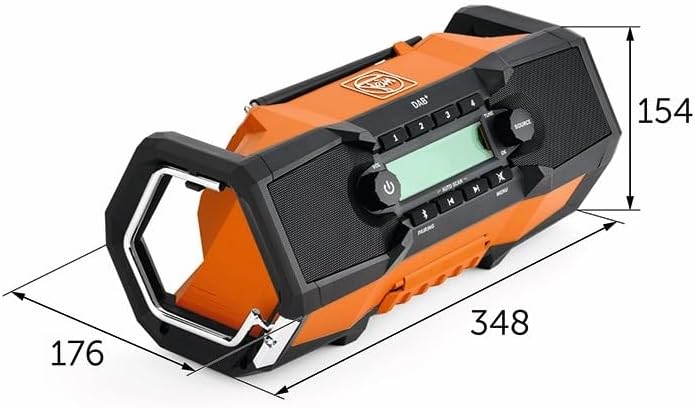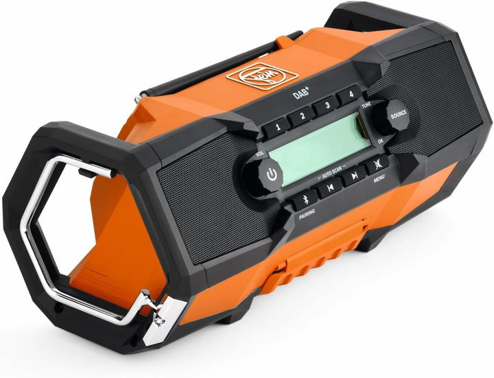 - BAUSTELLEN DIGITAL RADIO - Robustes und mobiles Baustellen-Digitalradio mit klarem, einzigartigem Klang und extremer Flexibilität für angenehmes Arbeiten auch in rauer Arbeitsumgebung. Zwei 15 W Lautsprecher mit zusätzlichen Passivmembranen sorgen