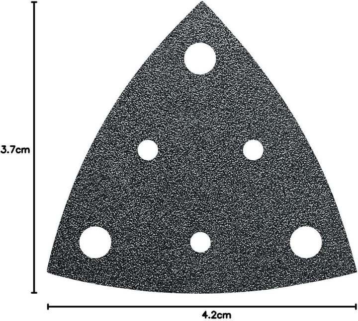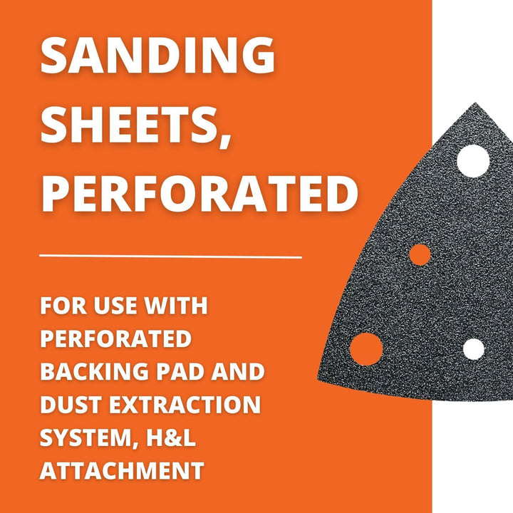 - Gelocht, für den Einsatz mit gelochter Schleifplatte und Staubabsaugung, Klettenschnellbefestigung.