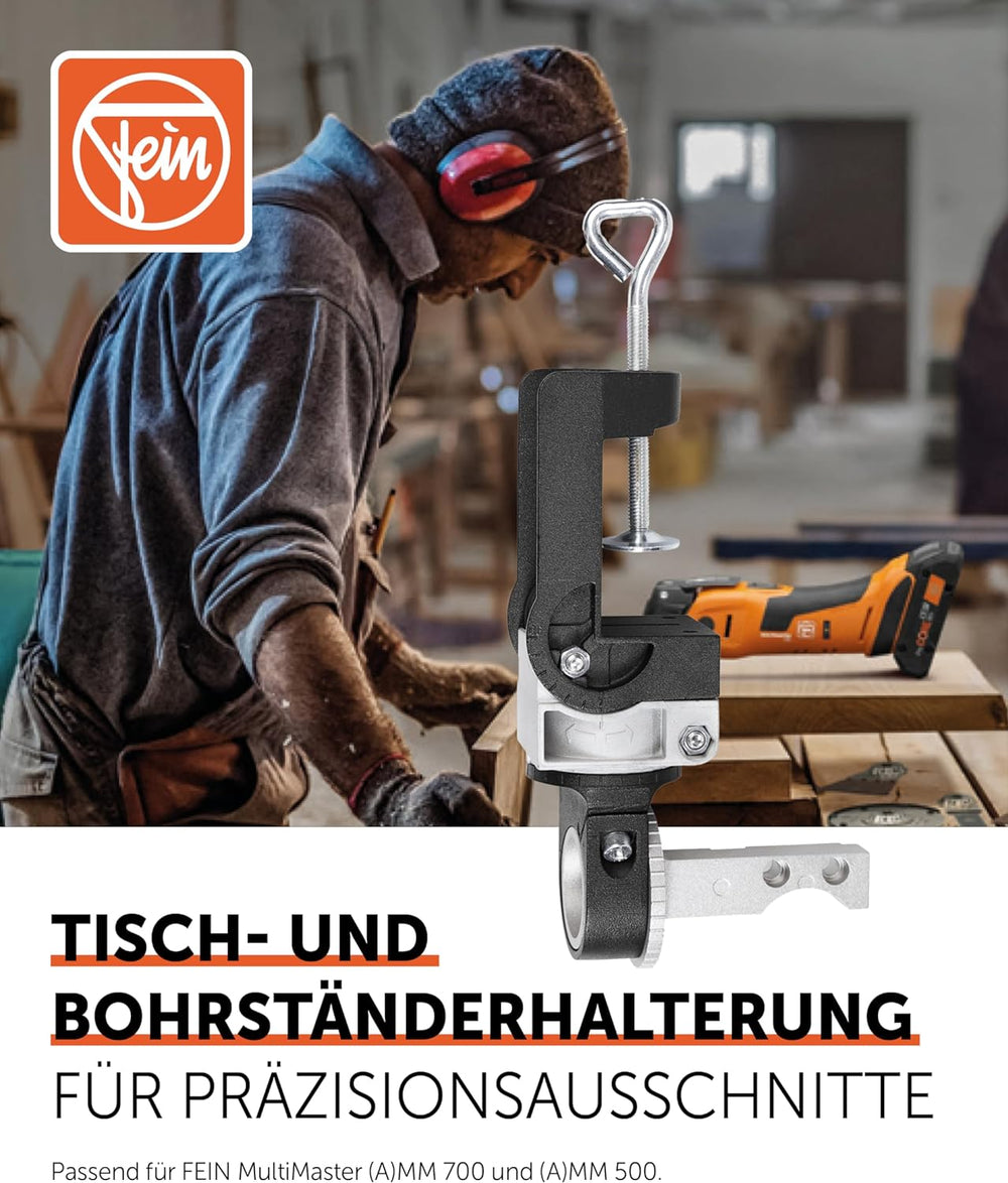 - Elektrowerkzeug kann an Tisch und Werkbank eingespannt und das Werkstück sicher herangeführt werden
