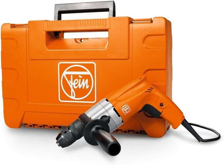 - Bohrmaschine - Mechanisches Zweigang-Getriebe zur optimalen Drehzahlanpassung für unterschiedlichste Einsatzzwecke. FEIN Sensitiv-Griff. Gasgebeelektronik. Präzisions-Bohrfutter aus Metall.