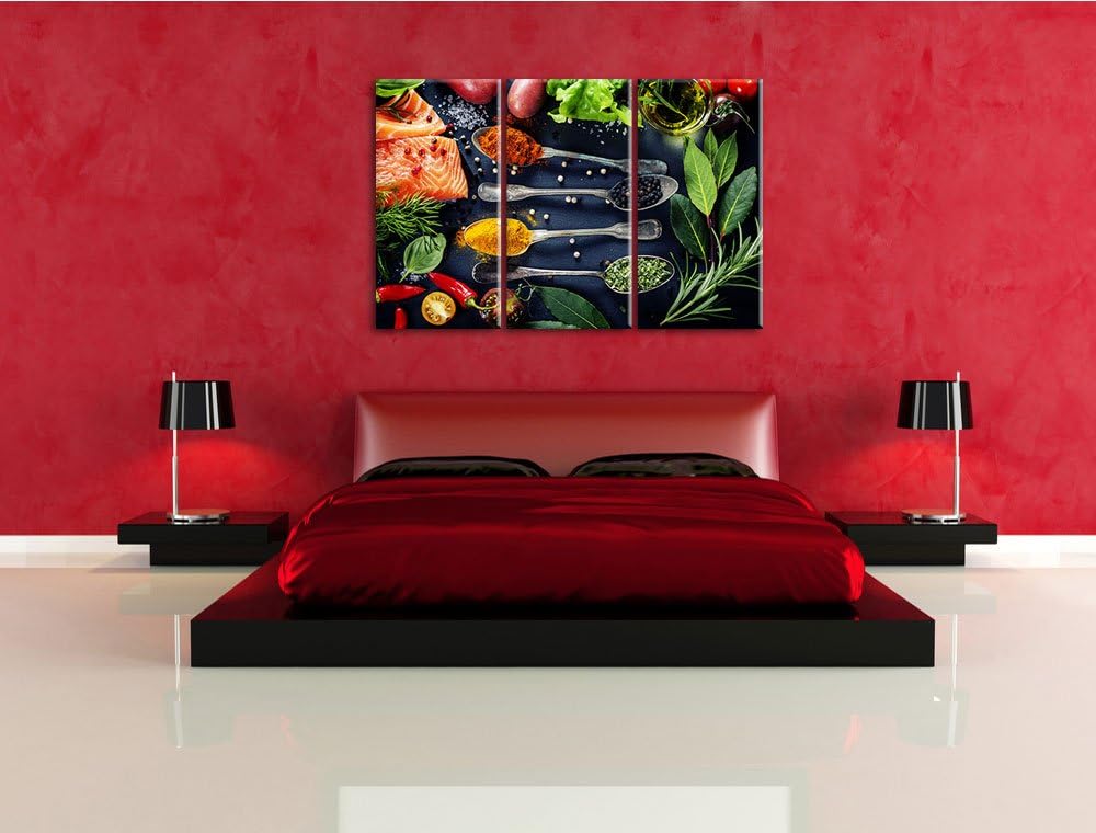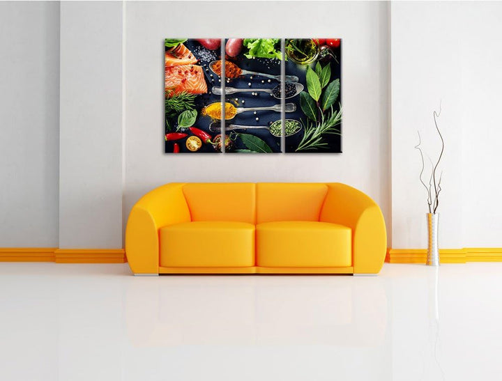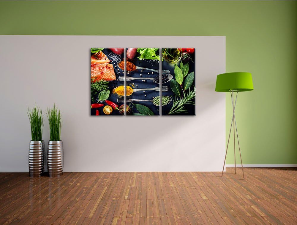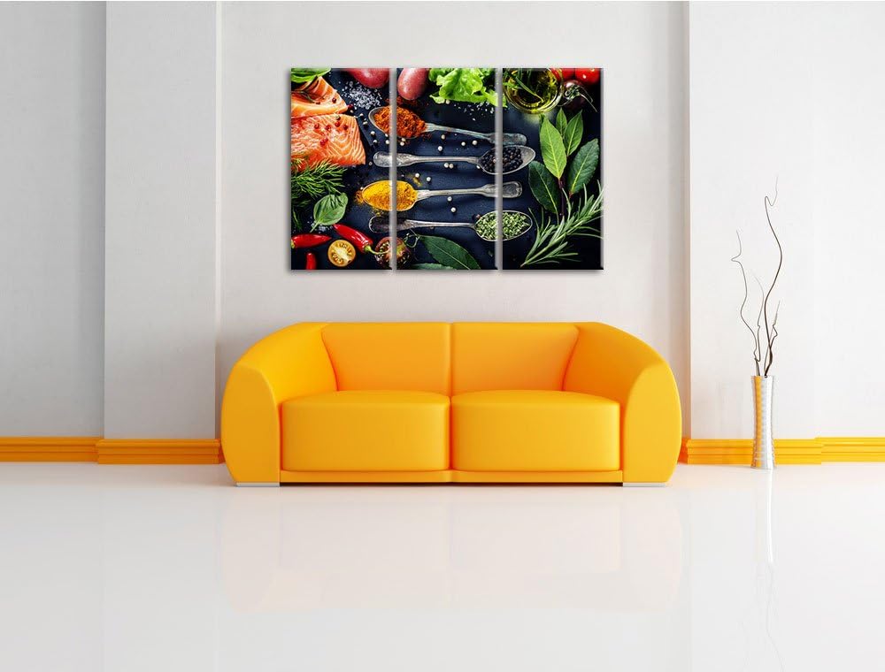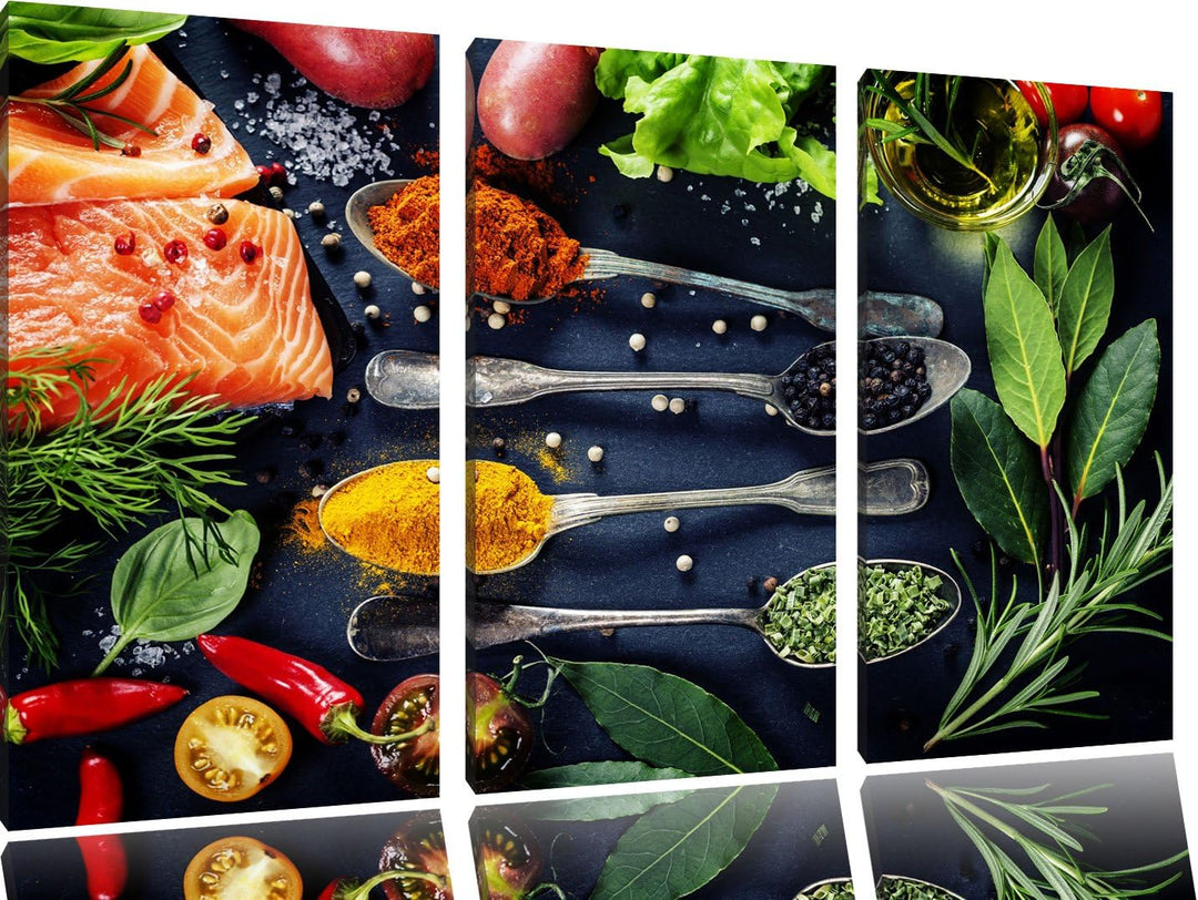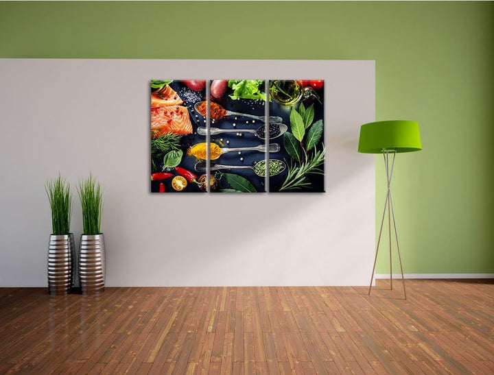 Feine Gewürze auf Löffeln als 3-Teiler Leinwandbild 120x80 Bild auf Leinwand, XXL riesige Bilder fer
