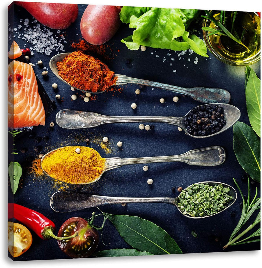 Feine Gewürze auf Löffeln, Format: 70x70 auf Leinwand, XXL riesige Bilder fertig gerahmt mit Keilrah