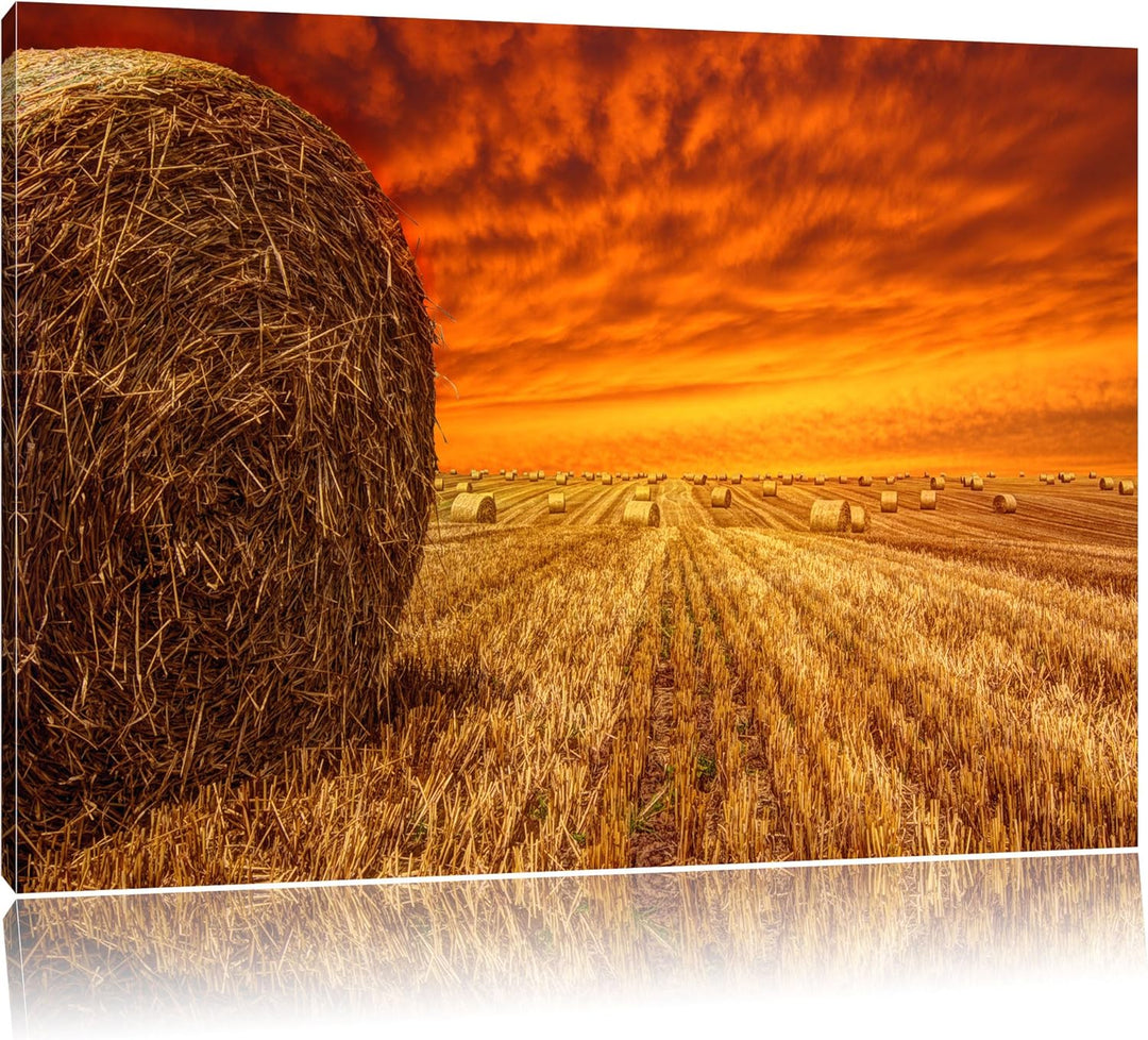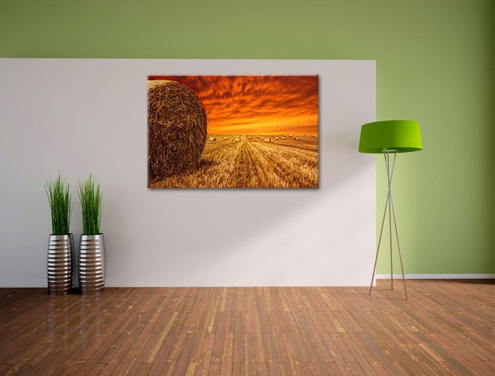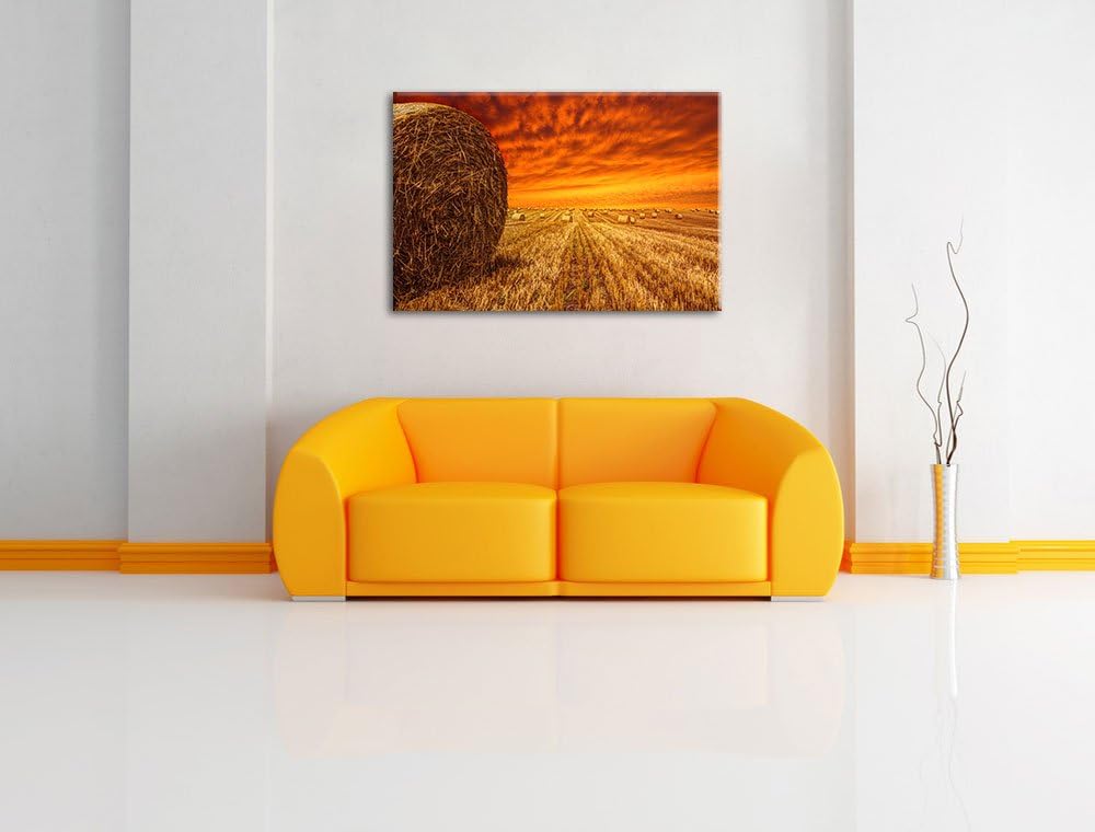 Feld im Sonnenuntergang Format: 100x70 auf Leinwand, XXL riesige Bilder fertig gerahmt mit Keilrahme