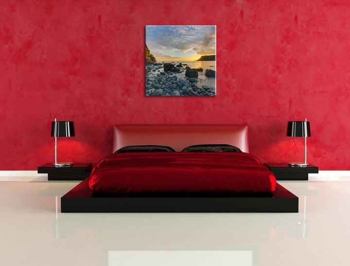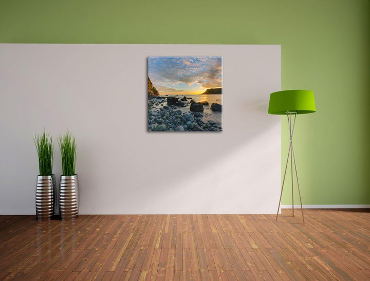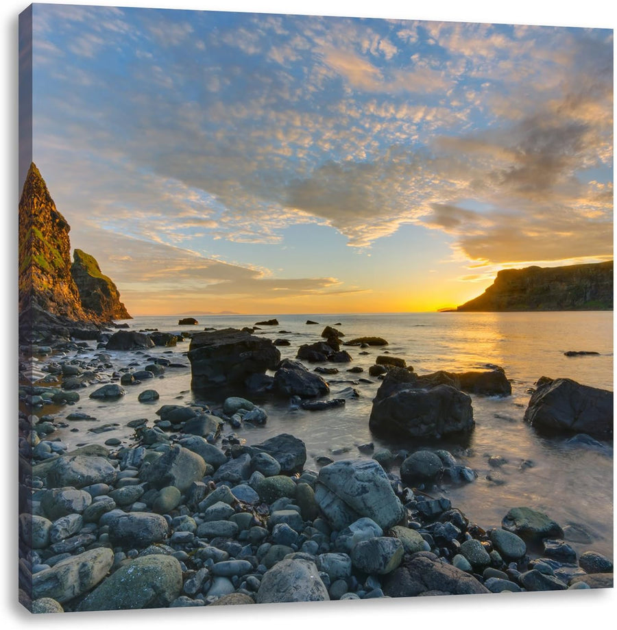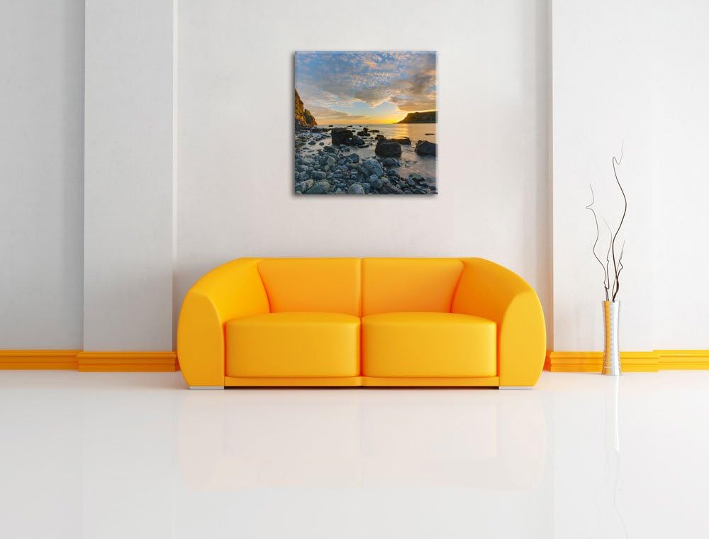 Felsen am Strand, Format: 70x70 auf Leinwand, XXL riesige Bilder fertig gerahmt mit Keilrahmen, Kuns