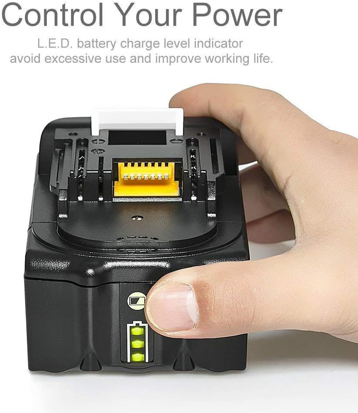 - 【Produktdetails】Mit 2 Stück BL1850 18V 5000mAh mit LED ,Akku Typ: Lithium-ion | Spannung: 18V | Kapazität: 5000mAh / 5.0Ah | Wattage: 90W | BL1850B Akku für Makita. Kompatibel mit Makita 18V Batterie BL1850B, BL1850, BL1860B, BL1860, BL1840B,
