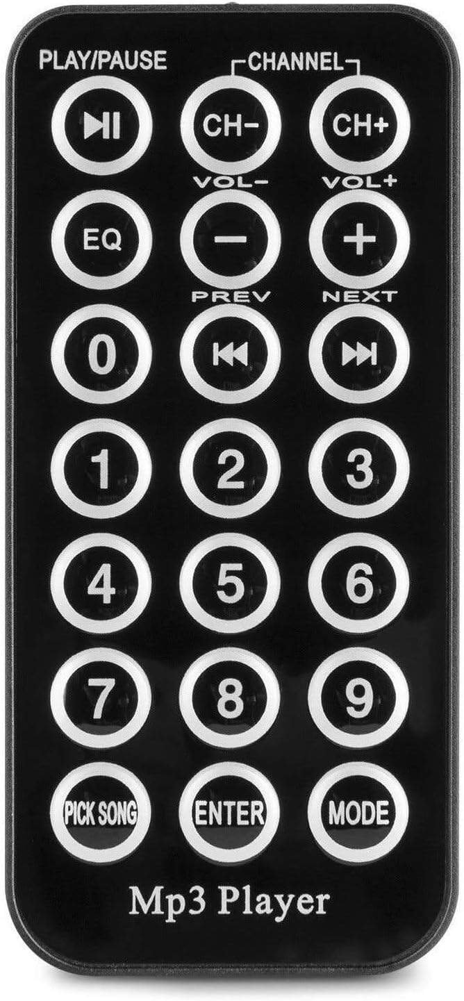 - Mit der mitgelieferten Fernbedienung können Sie den Leistungsverstärker sowie MP3-Player bequem aus der Ferne steuern und zwischen den einzelnen Kanälen wechseln