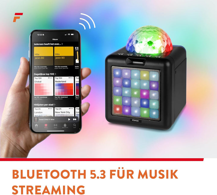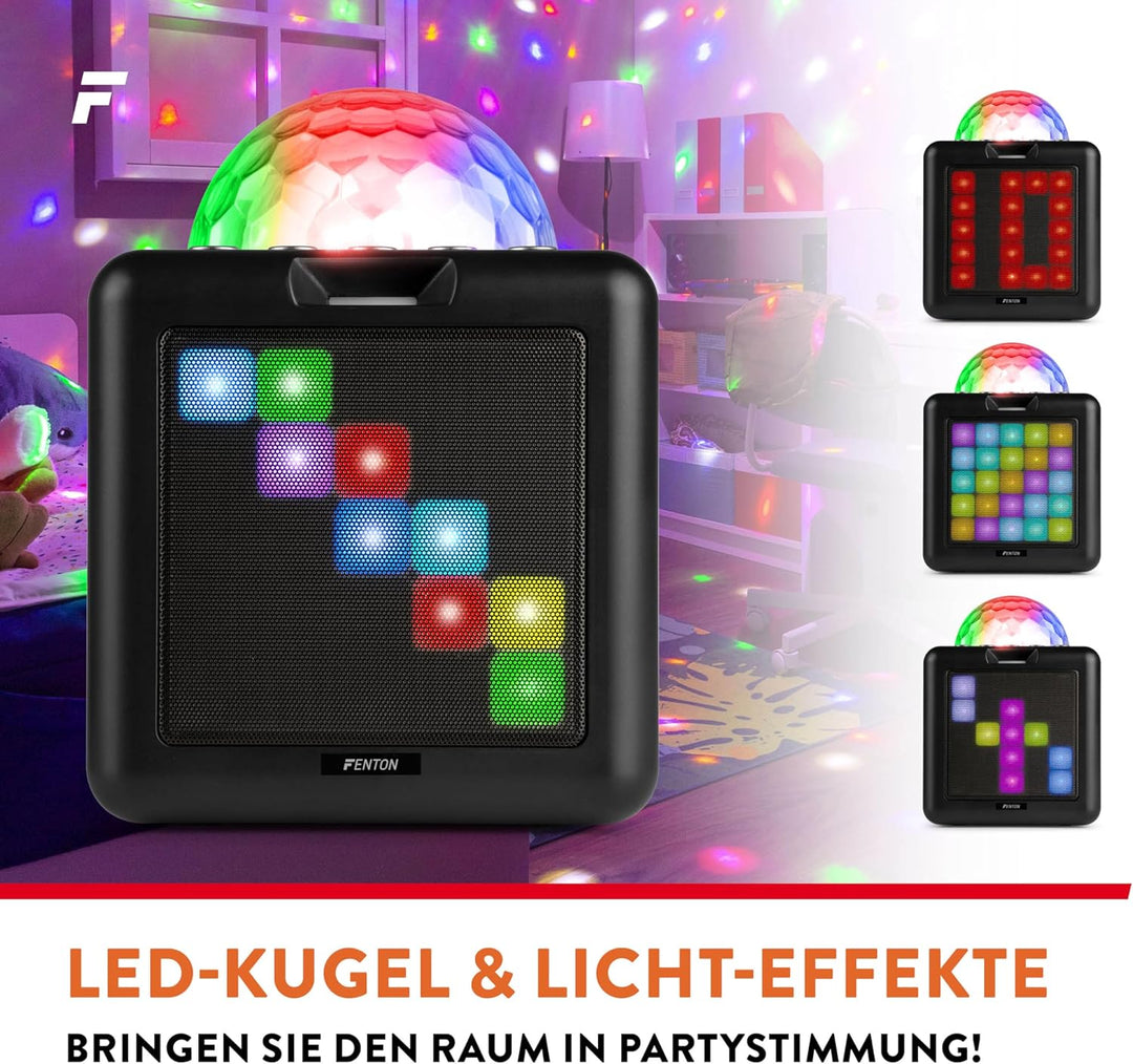 - Partybox Karaoke-Maschine : Farbige LED-Lichteffekte und ein Jelly Ball auf der Oberseite schaffen eine beeindruckende Lichtshow für echte Partyatmosphäre.