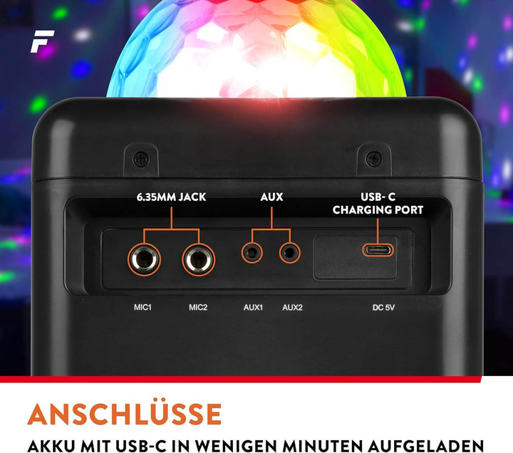- Portable Karaoke Box : Mobiles Karaoke Set mit eingebautem Akku, perfekt für Partys im Garten, auf Reisen oder als Geschenk. Singen Sie überall und sorgen Sie für Stimmung. Mit dem USB-C Kabel in wenigen Minuten vollgeladen.