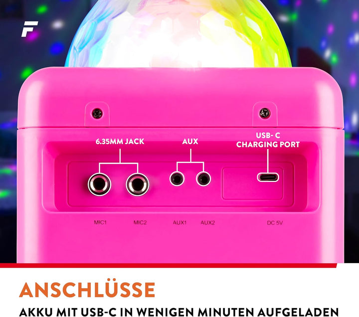 - Portable Karaoke Box : Mobiles Karaoke Set mit eingebautem Akku, perfekt für Partys im Garten, auf Reisen oder als Geschenk. Singen Sie überall und sorgen Sie für Stimmung. Mit dem USB-C Kabel in wenigen Minuten vollgeladen.