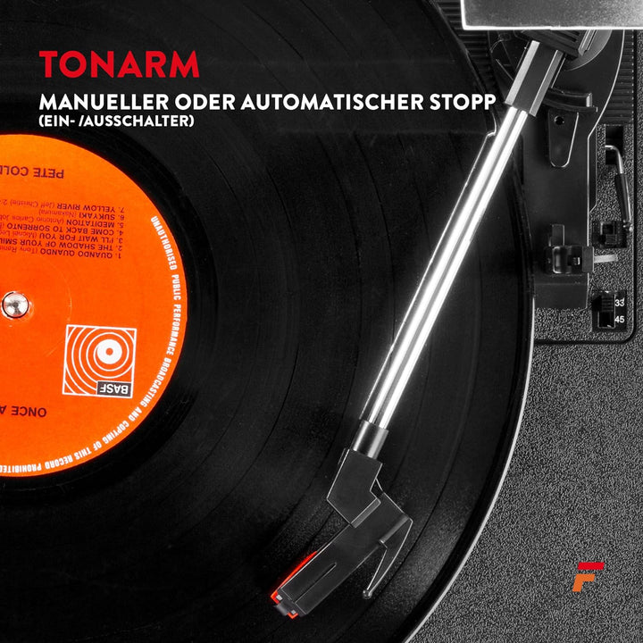 - Sie benötigen keine separaten Lautsprecher. Dieser Schallplattenspieler mit Bluetooth verfügt über integrierte Lautsprecher. Ein kleines und feines Designer Stück