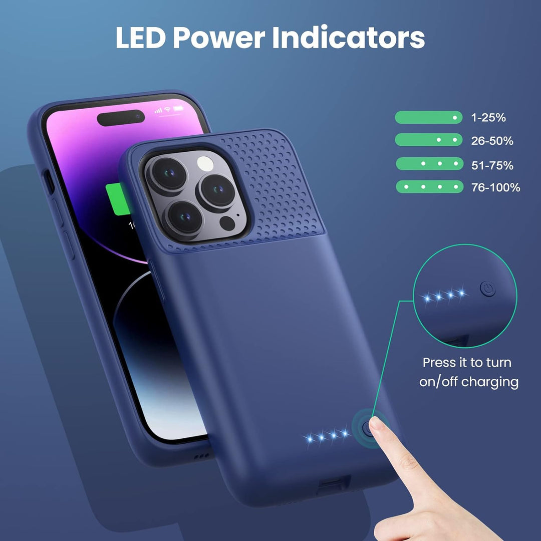 - 【Sicheres Aufladen & Vollschutz】Das smart battery case ist nicht nur ein tragbares Ladegerät, sondern auch eine ausgezeichnete Schutzhülle für Ihr iPhone. Robuste Rückseite und Einfassung, die Ihr iPhone 14 Pro gut vor Stössen und Stürzen