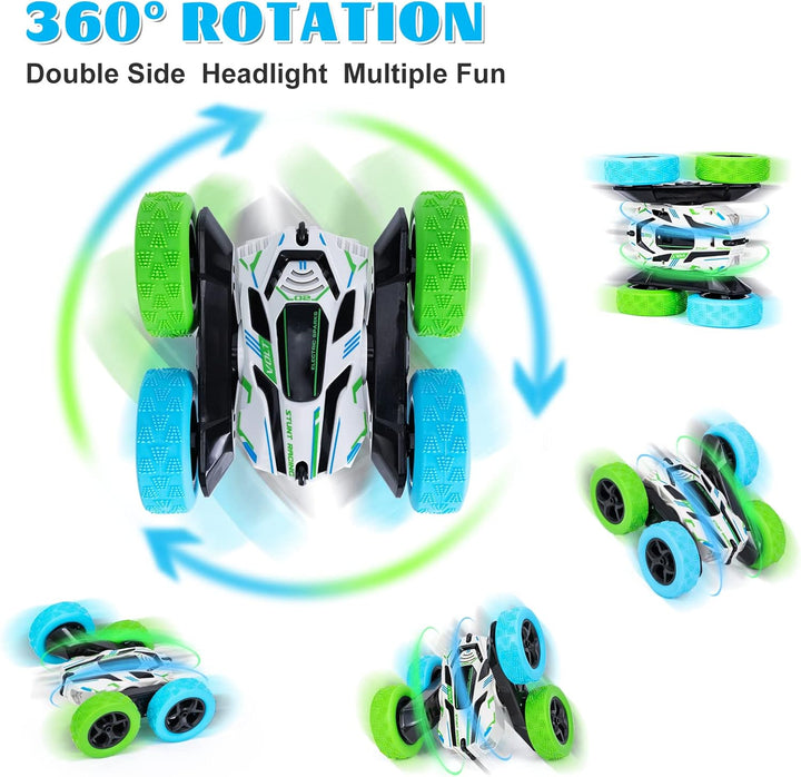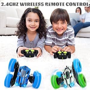 - 【2 WIEDERAUFLADBARE BATTERIE & 2,4 GHZ】Das RC-Stunt-Auto nimmt eine 2,4-GHnz-Technologie an, die für mehr Autos geeignet ist, die gleichzeitig mit der gegenseitigen Interferenzprävention spielen. Fernbedienung benötigt 2 Batterien, nicht enthalten.